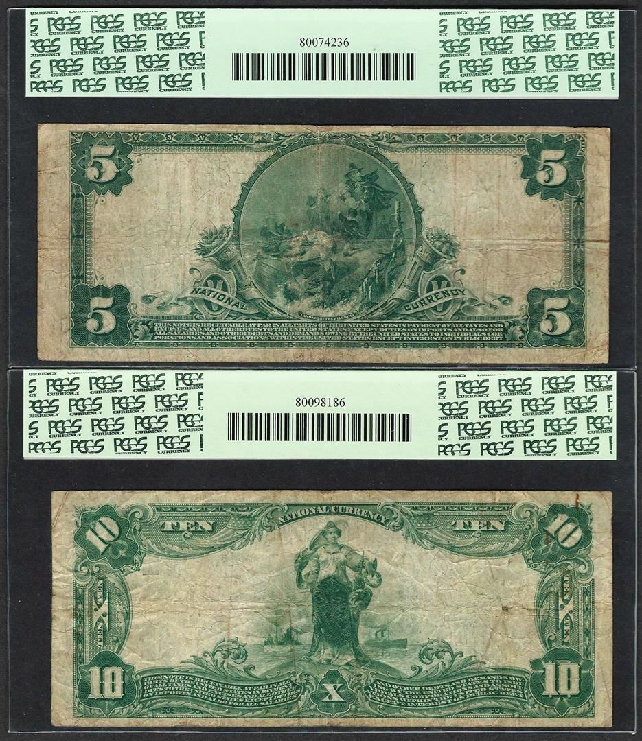 One Lot of 1902PB $5/10 Washington, PA CH# 3383 National Currency Notes PCGS Fine 12. PCGS Graded.