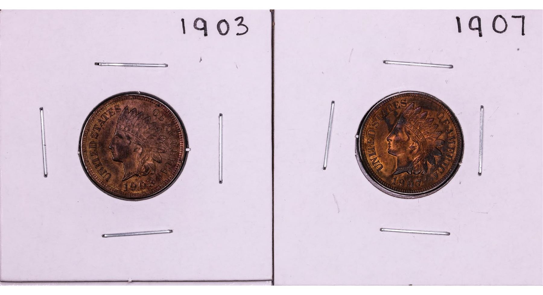 One Lot of 1903 & 1907 Indian Head Cent Coins.