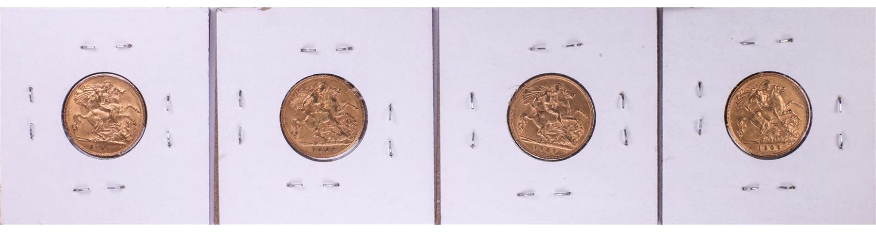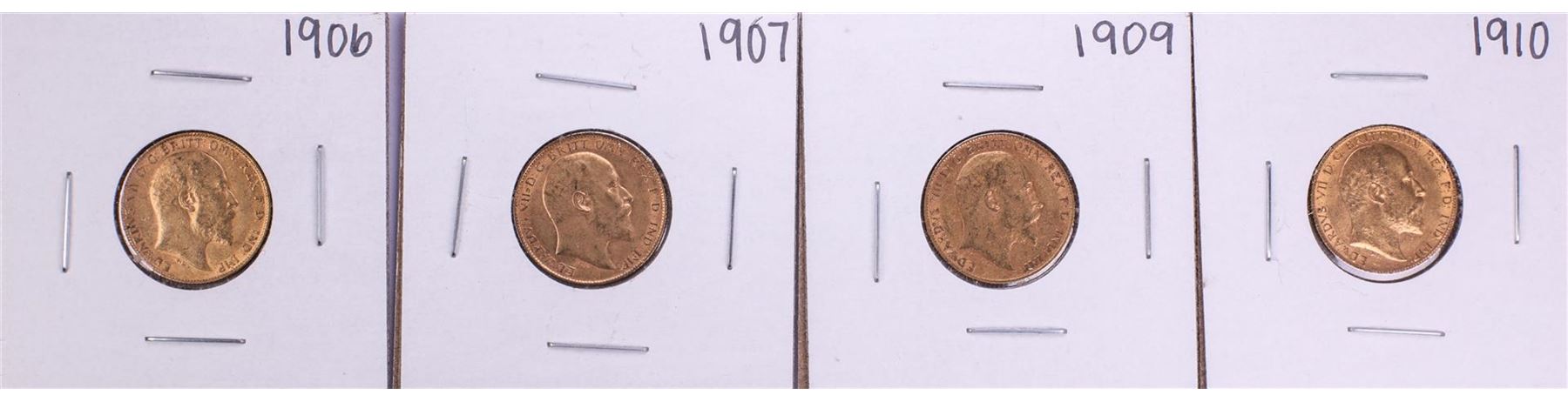 One Lot of 1906-1907 & 1909-1910 Great Britain Half Sovereign Gold Coins.