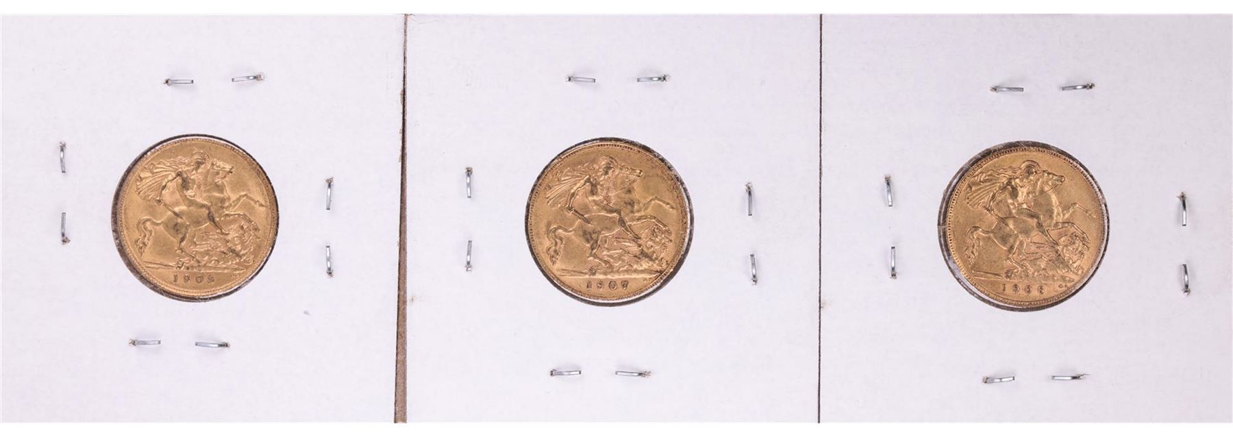 One Lot of 1906-1908 Great Britain Half Sovereign Gold Coins.