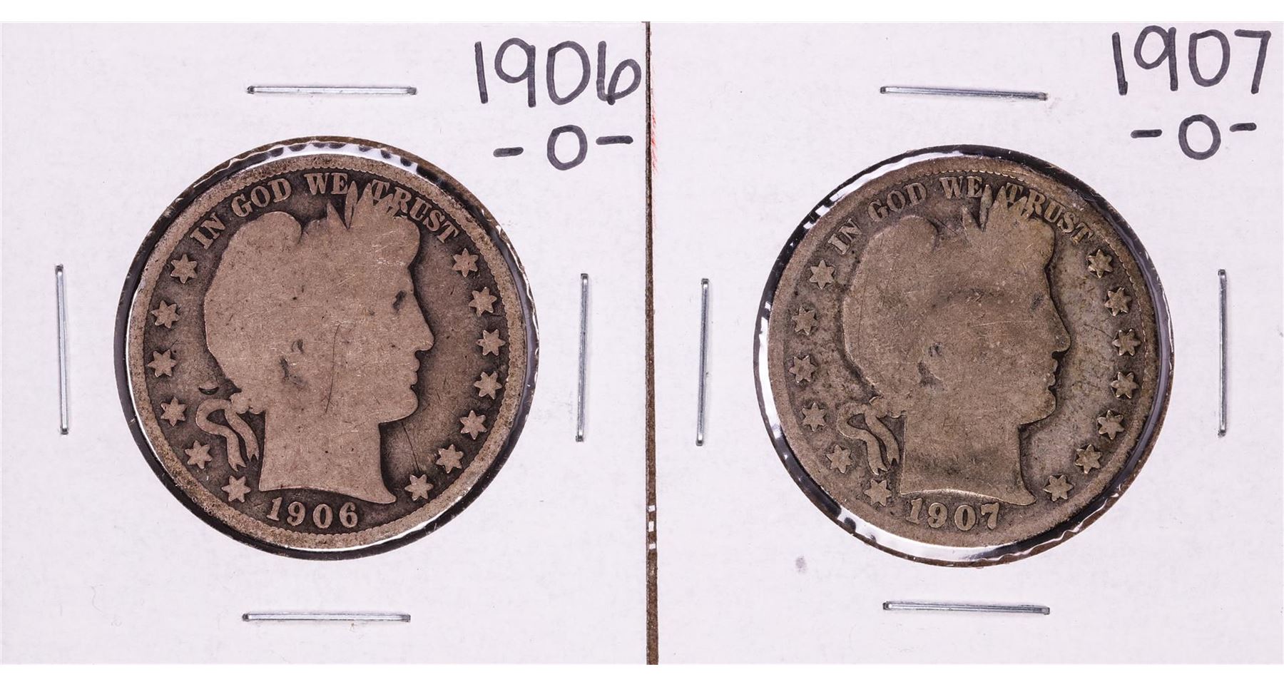 One Lot of 1906-O & 1907-O Barber Half Dollar Coins.