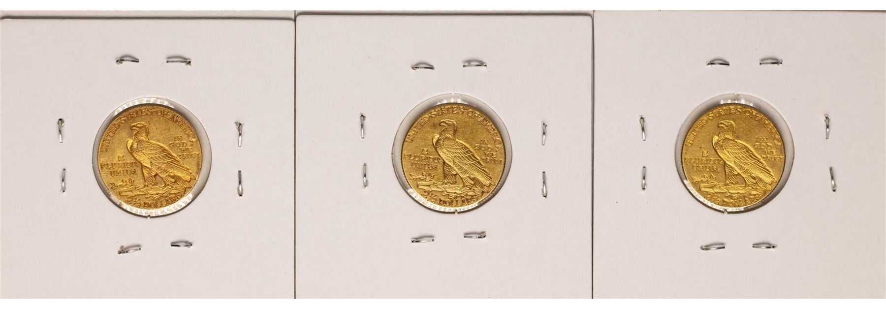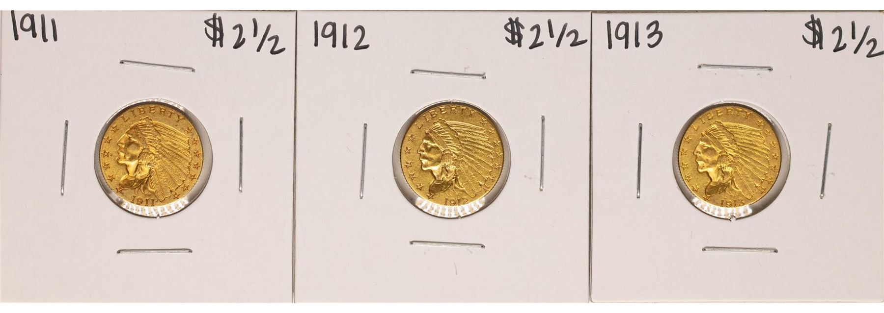 One Lot of 1911-1913 $2 1/2 Indian Head Quarter Eagle Gold Coins.