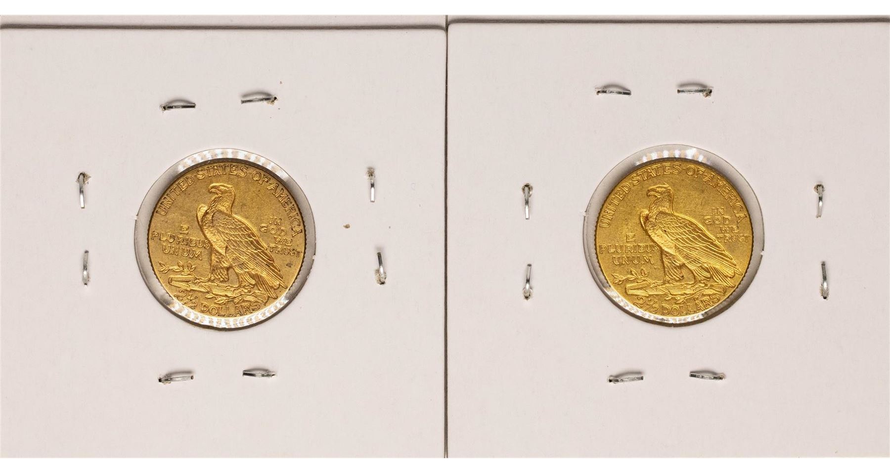 One Lot of 1912-1913 $2 1/2 Indian Head Quarter Eagle Gold Coins.