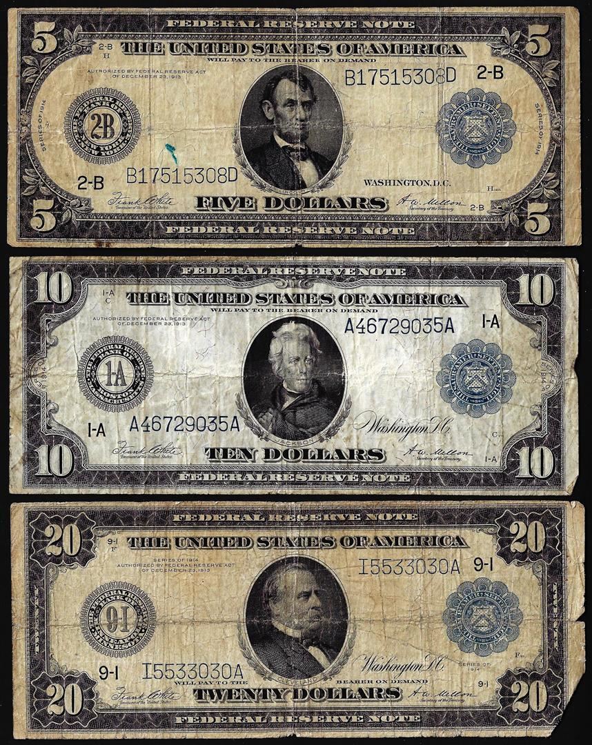One Lot of 1914 $5/$10/$20 Federal Reserve Notes.