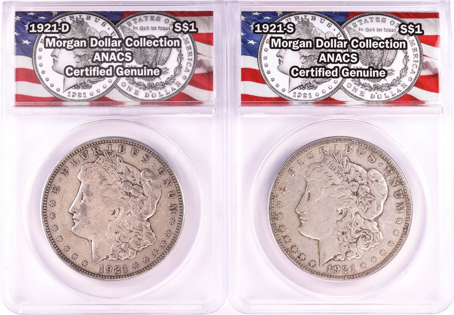 One Lot of 1921-S & 1921-D $1 Morgan Silver Dollar Coins ANACS Genuine. ANACS Certified.
