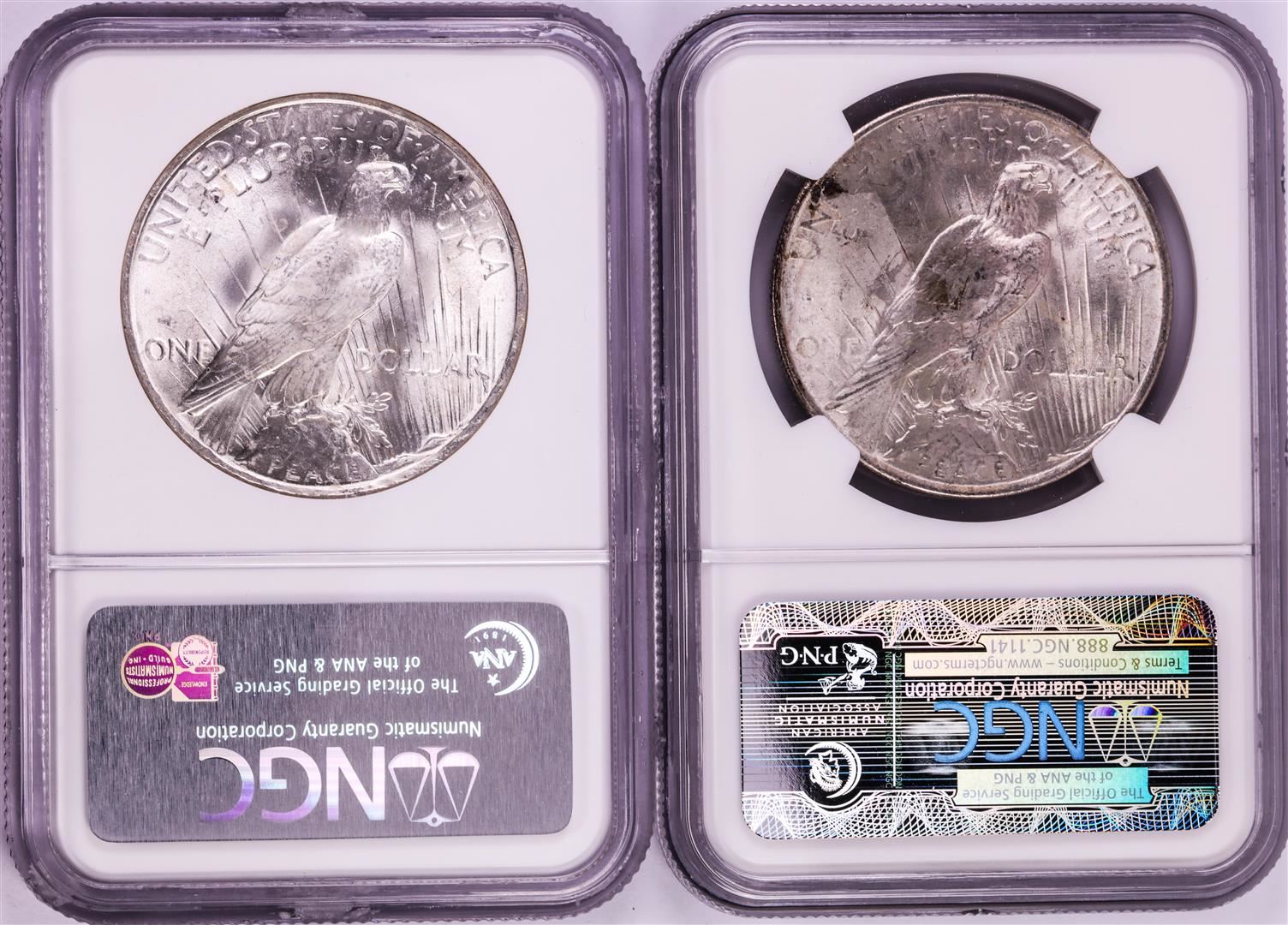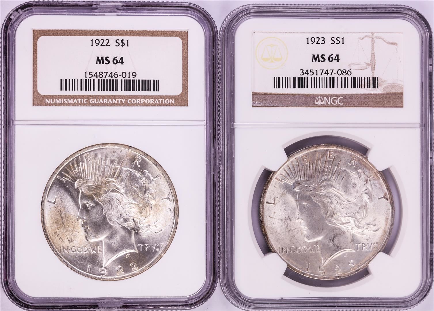 One Lot of 1922-1923 $1 Peace Silver Dollar Coins NGC MS64. NGC Certified.