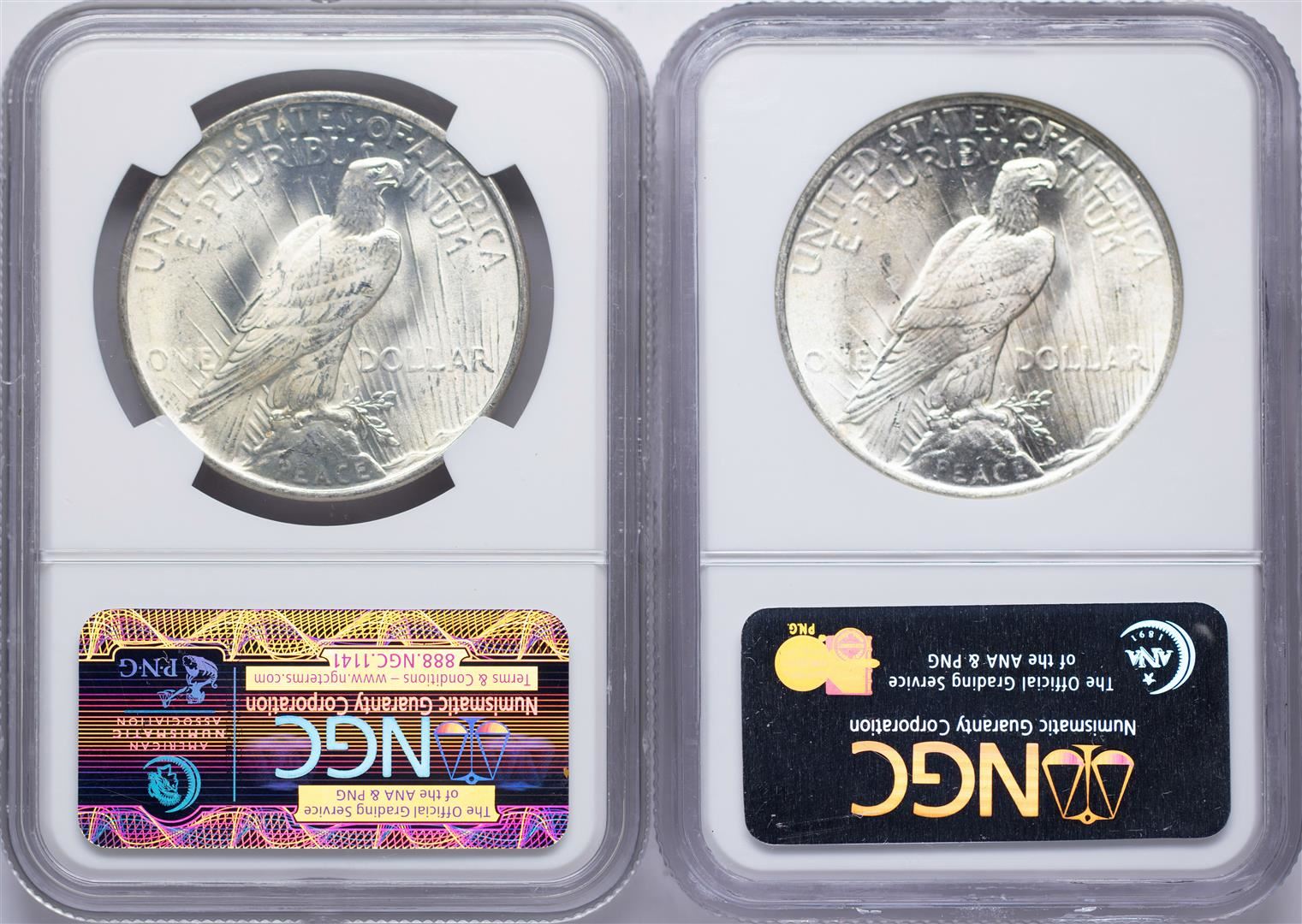 One Lot of 1922-1923 $1 Peace Silver Dollar Coins NGC MS65. NGC Certified.