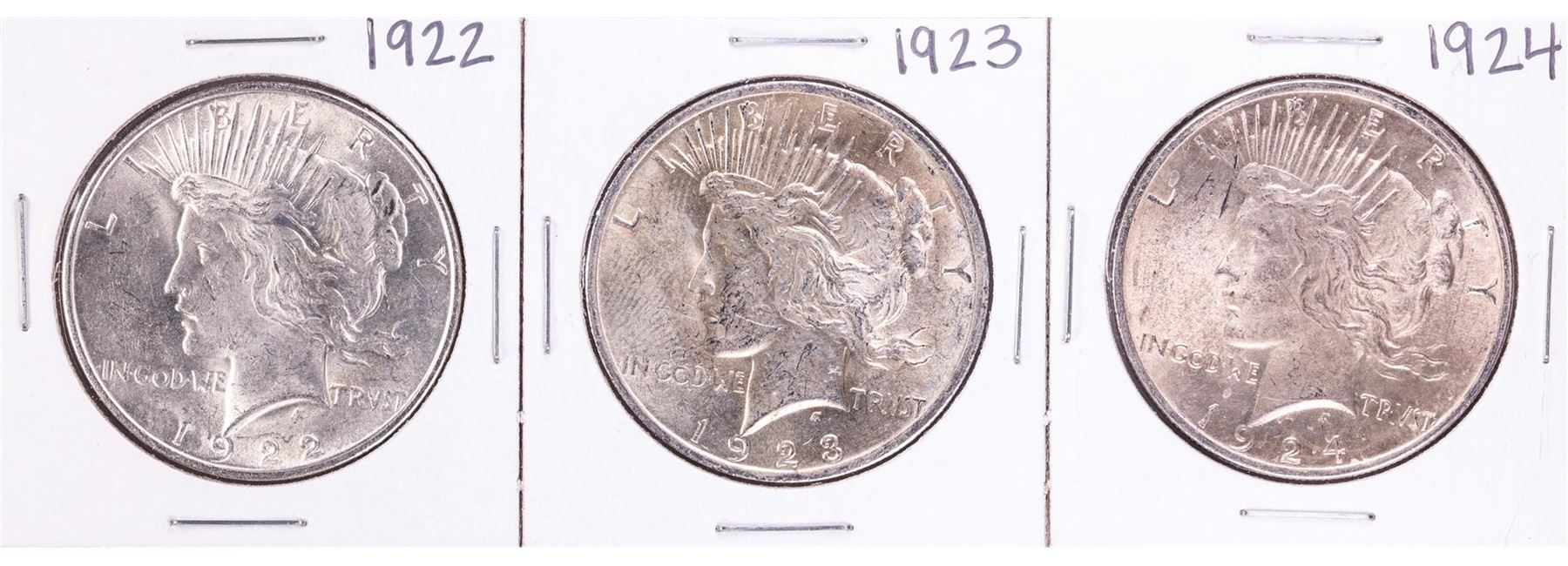 One Lot of 1922-1924 $1 Peace Silver Dollar Coins.