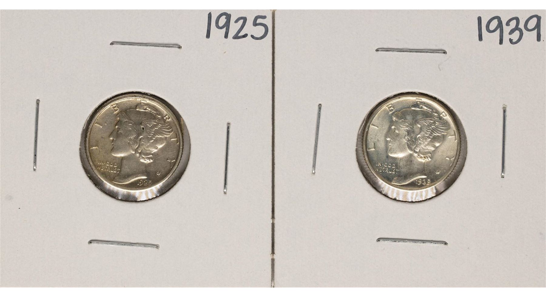 One Lot of 1925 & 1939 Mercury Dime Coins.