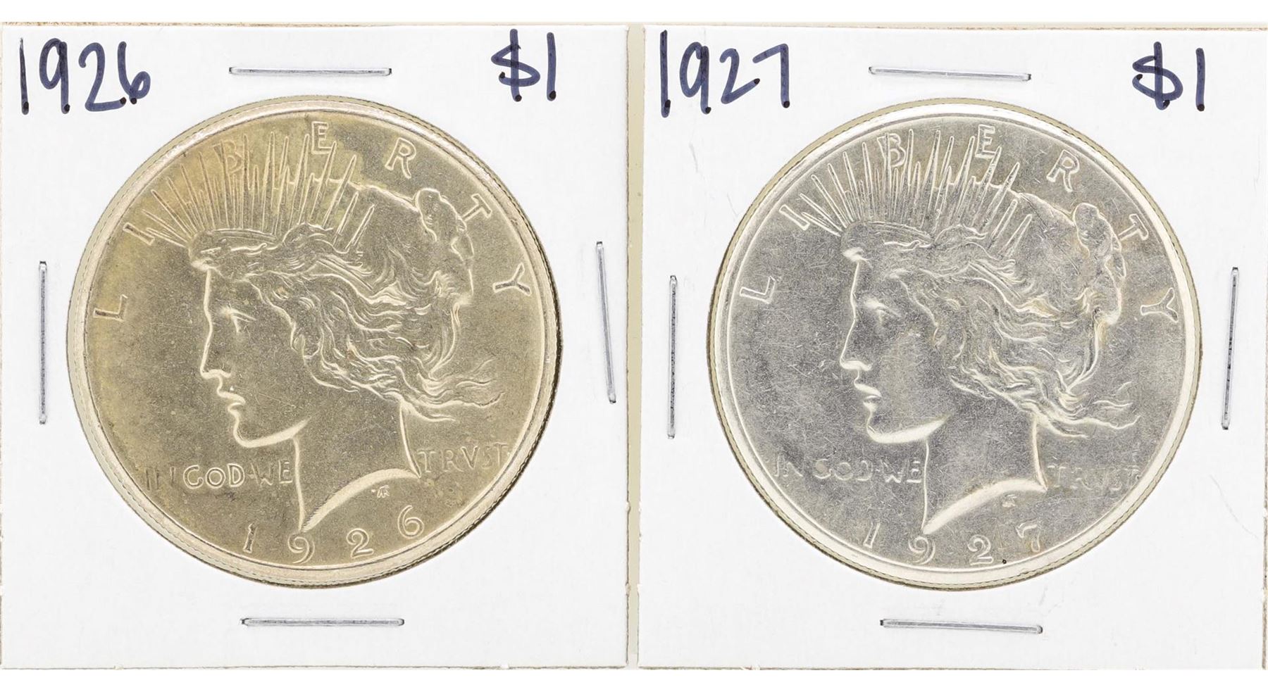 One Lot of 1926-1927 $1 Peace Silver Dollar Coins.