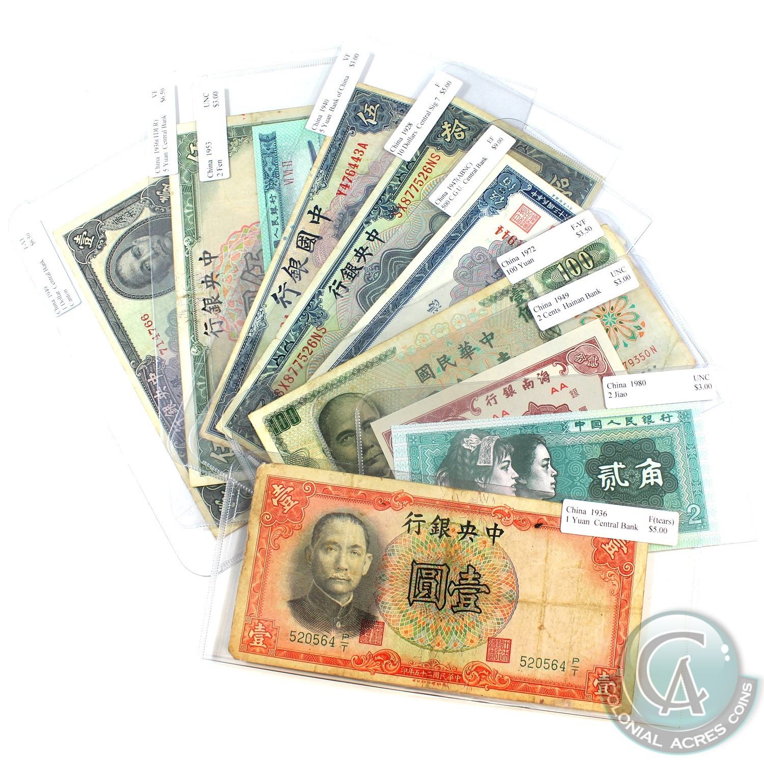 Lot of 1928-1980 Banknotes from China - All Notes are Different. 10pcs