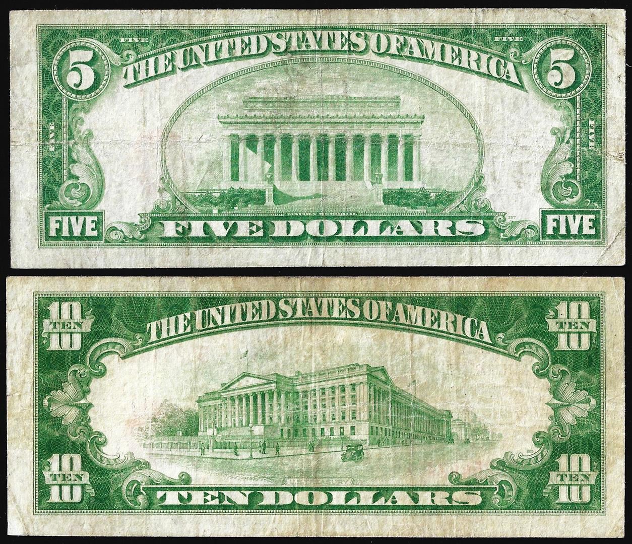 One Lot of 1929 $5/$10 National Bank at Pittsburgh, PA CH# 252 National Currency Notes.