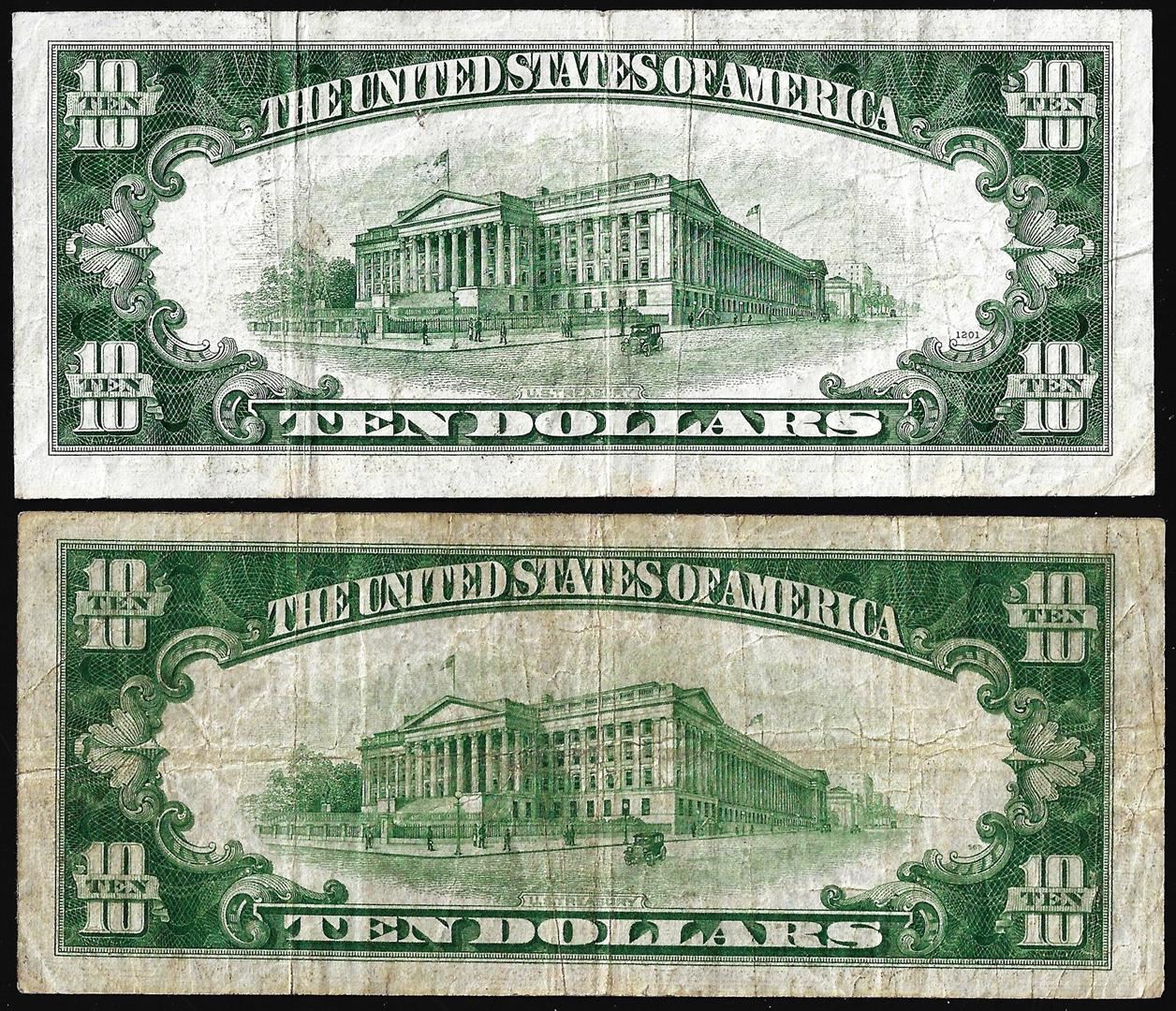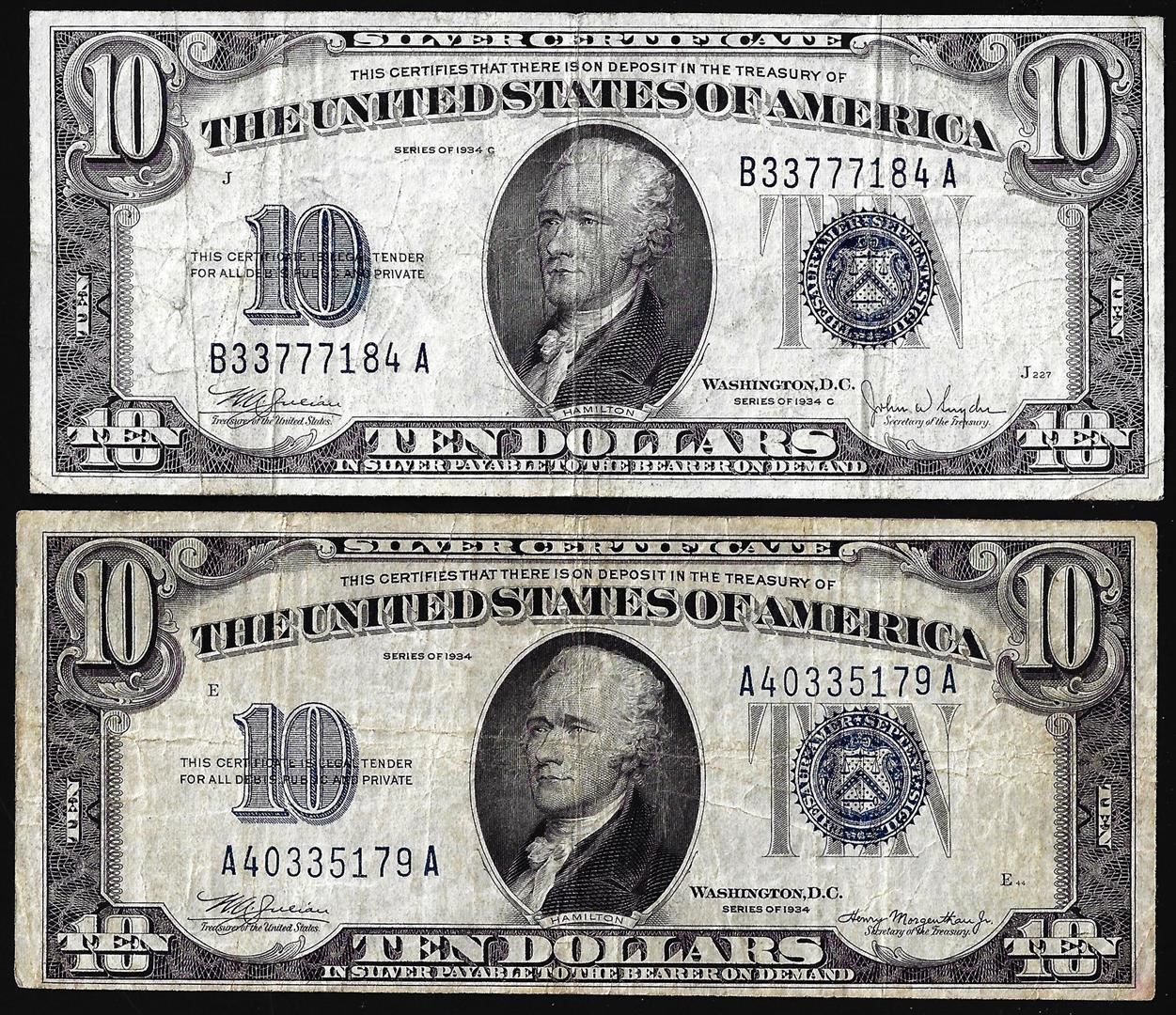 One Lot of 1934 & 1934C $10 Silver Certificate Notes.