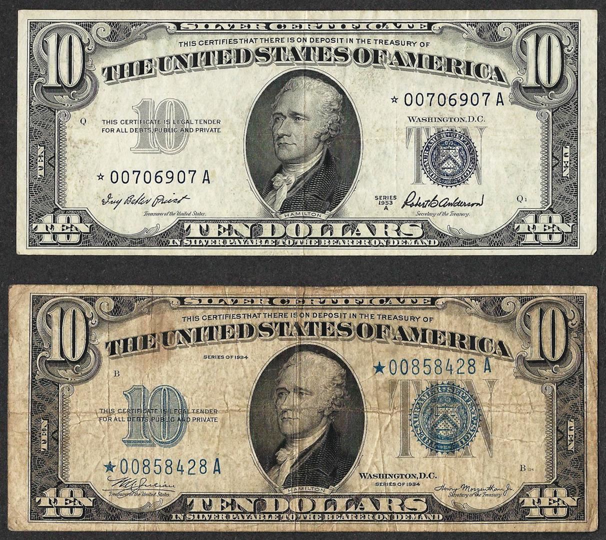 One Lot of 1934 & 1953A $10 Silver Certificate STAR Notes.