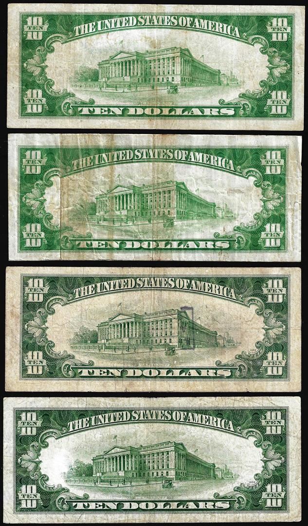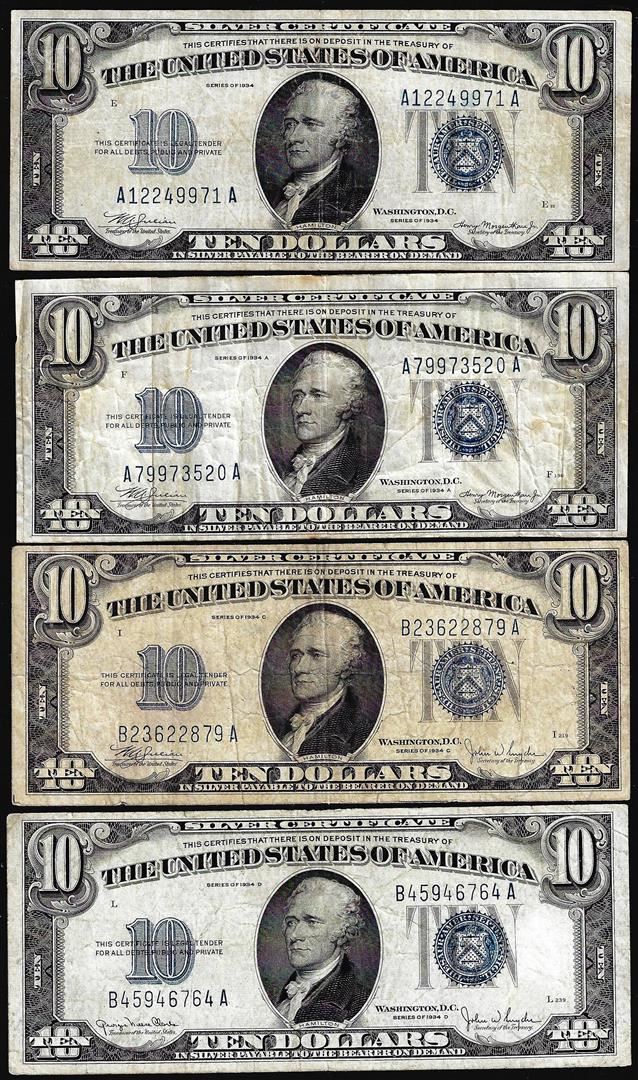One Lot of 1934/A/C/D $10 Silver Certificate Notes.