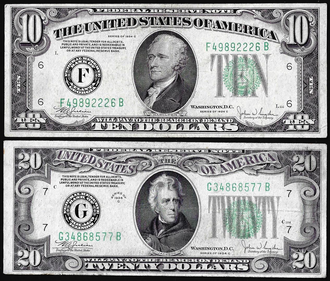 One Lot of 1934C $10 & $20 Federal Reserve Notes.