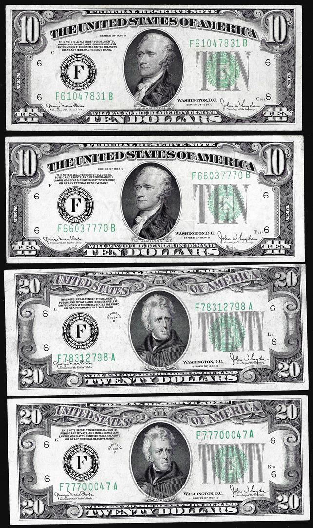 One Lot of 1934D $10 & $20 Federal Reserve Notes Atlanta.