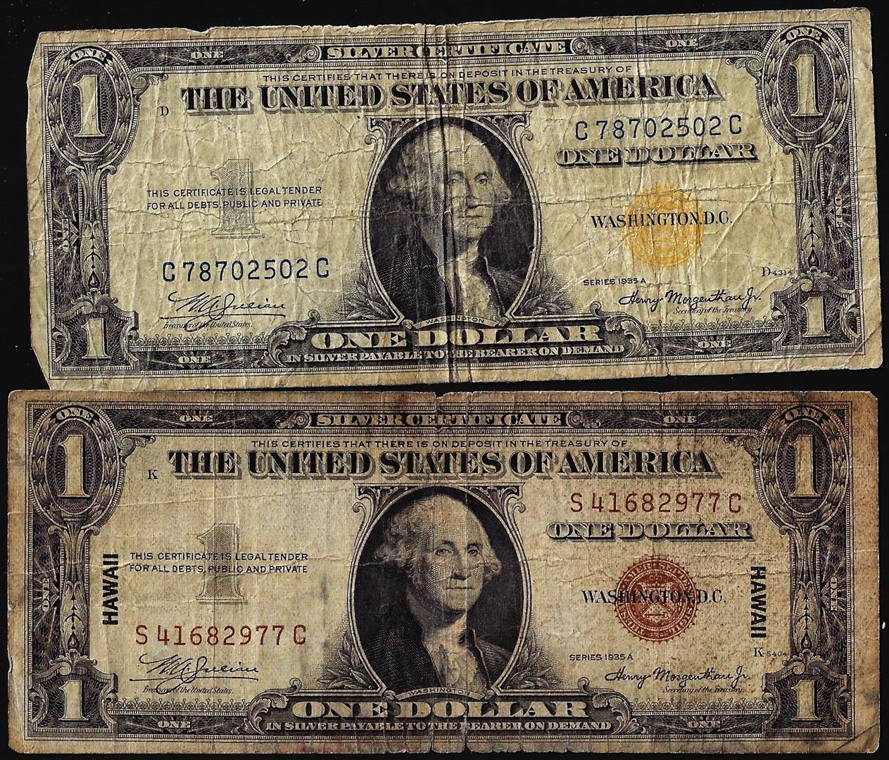 Lot of 1935A $1 Hawaii & North Africa WWII Emergency Issue Silver Certificate Notes