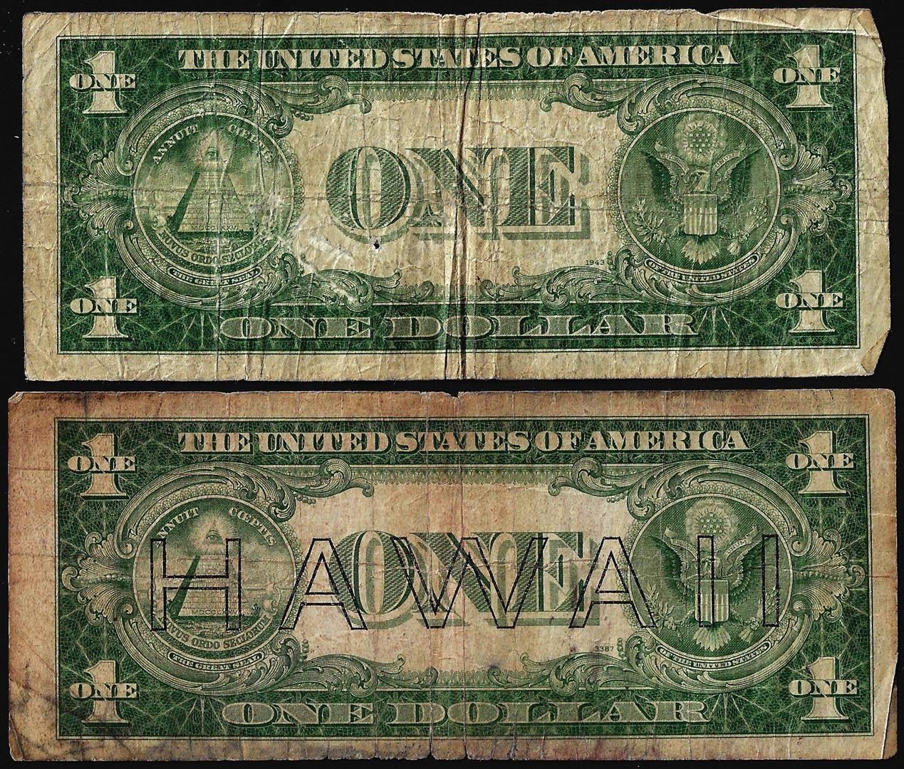 One Lot of 1935A $1 Hawaii & North Africa WWII Emergency Issue Silver Certificate Notes.