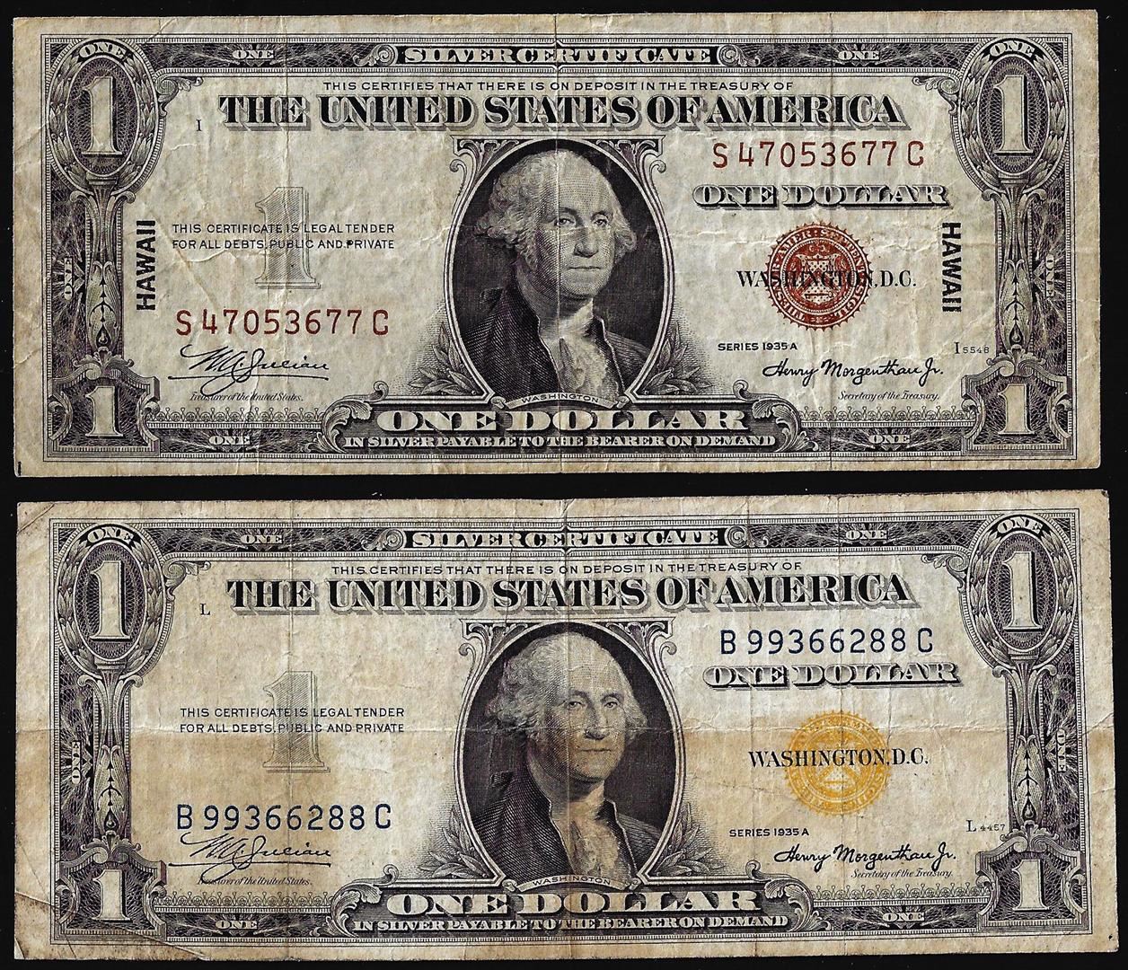 Lot of 1935A $1 Hawaii & North Africa WWII Emergency Issue Silver Certificate Notes