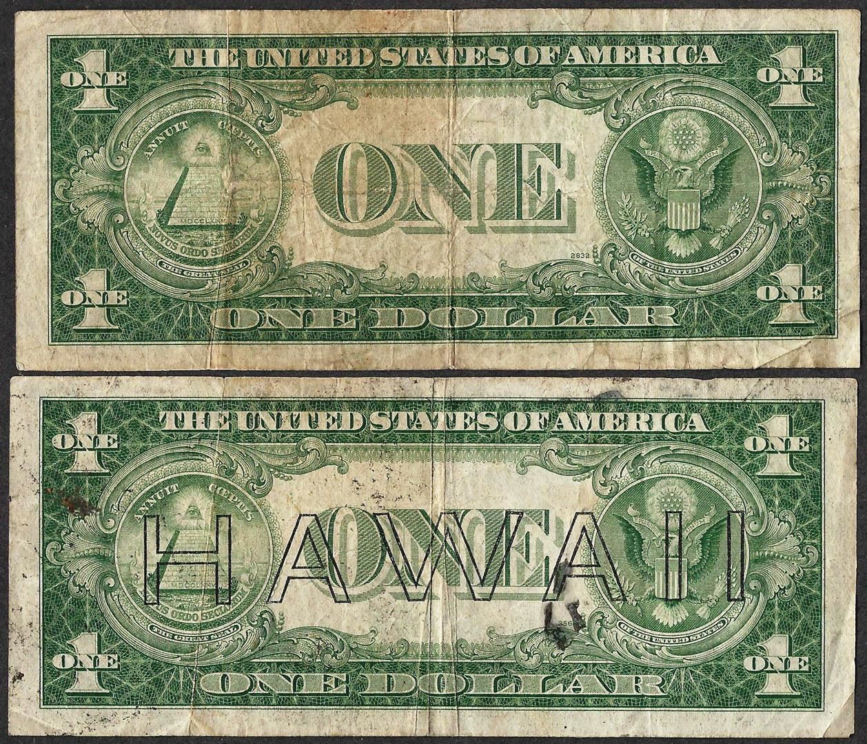 One Lot of 1935A $1 Silver Certificate WWII Emergency Hawaii & North Africa Notes.