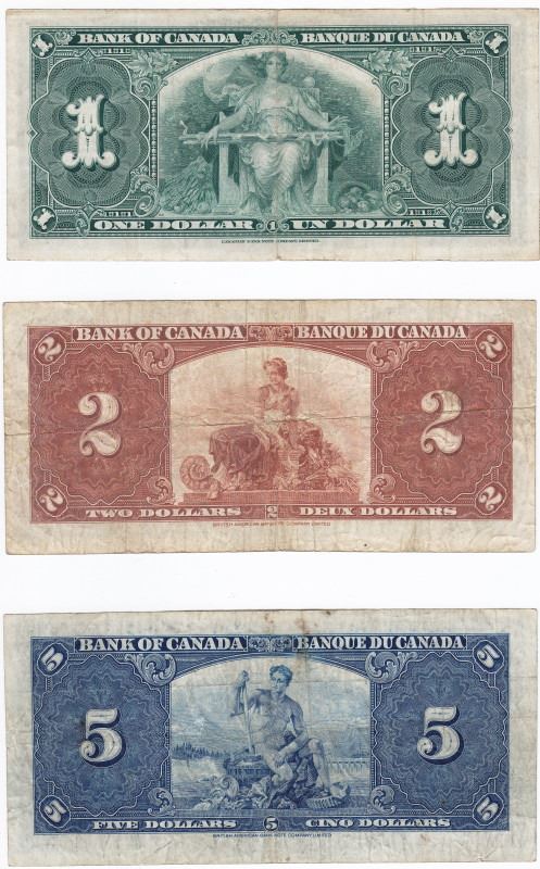 Lot of 1937 Bank of Canada Bank Notes - $1, $2, $5, $10 & $100