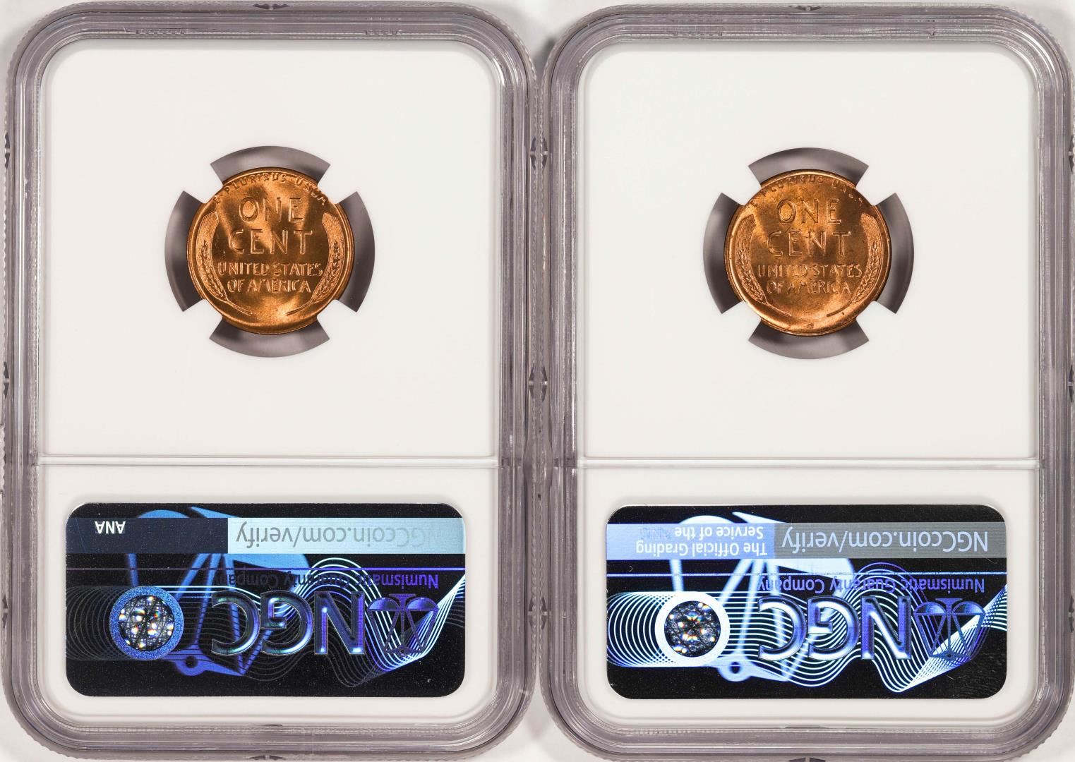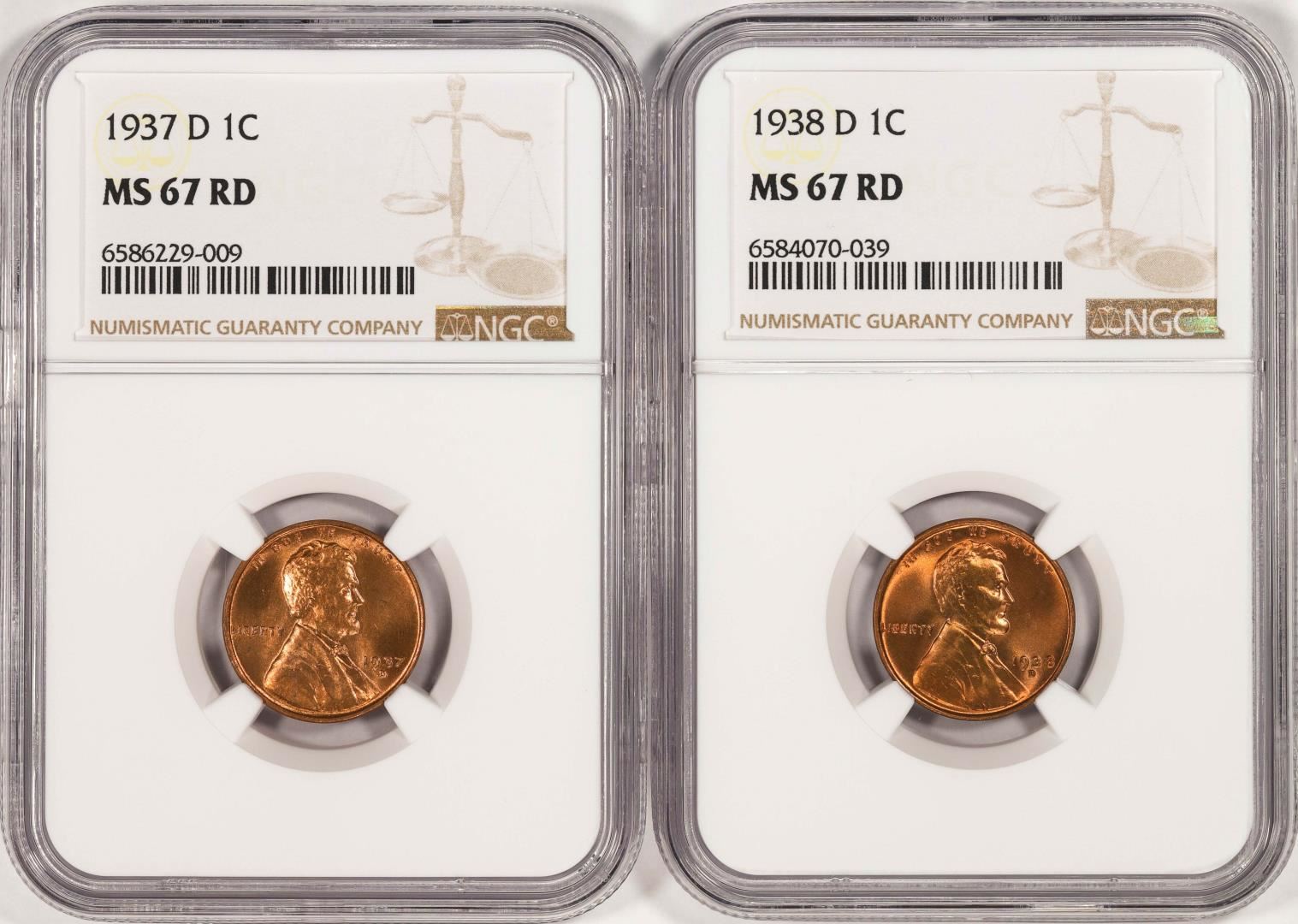One Lot of 1937-D & 1938-D Lincoln Wheat Cent Coins NGC MS67RD. NGC Certified.