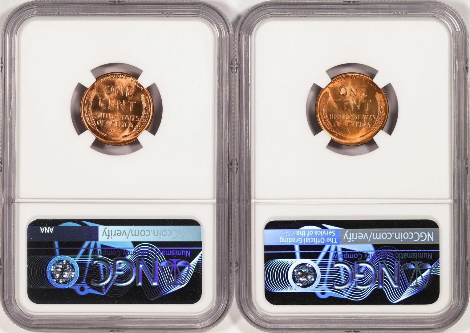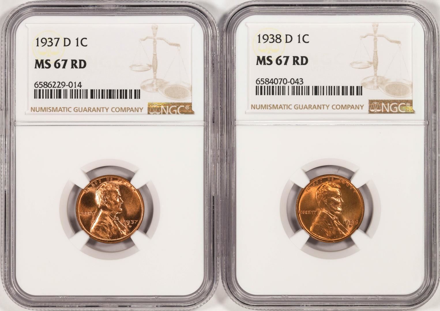One Lot of 1937-D & 1938-D Lincoln Wheat Cent Coins NGC MS67RD. NGC Certified.