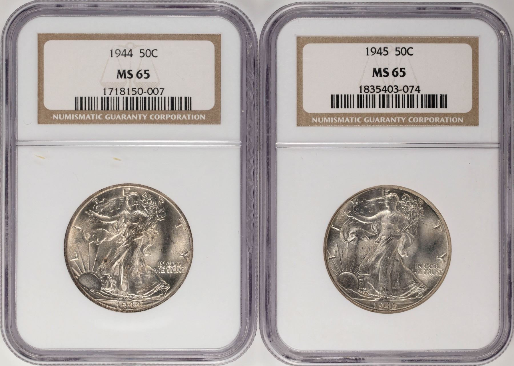 One Lot of 1944-1945 Walking Liberty Half Dollar Coins NGC MS65.