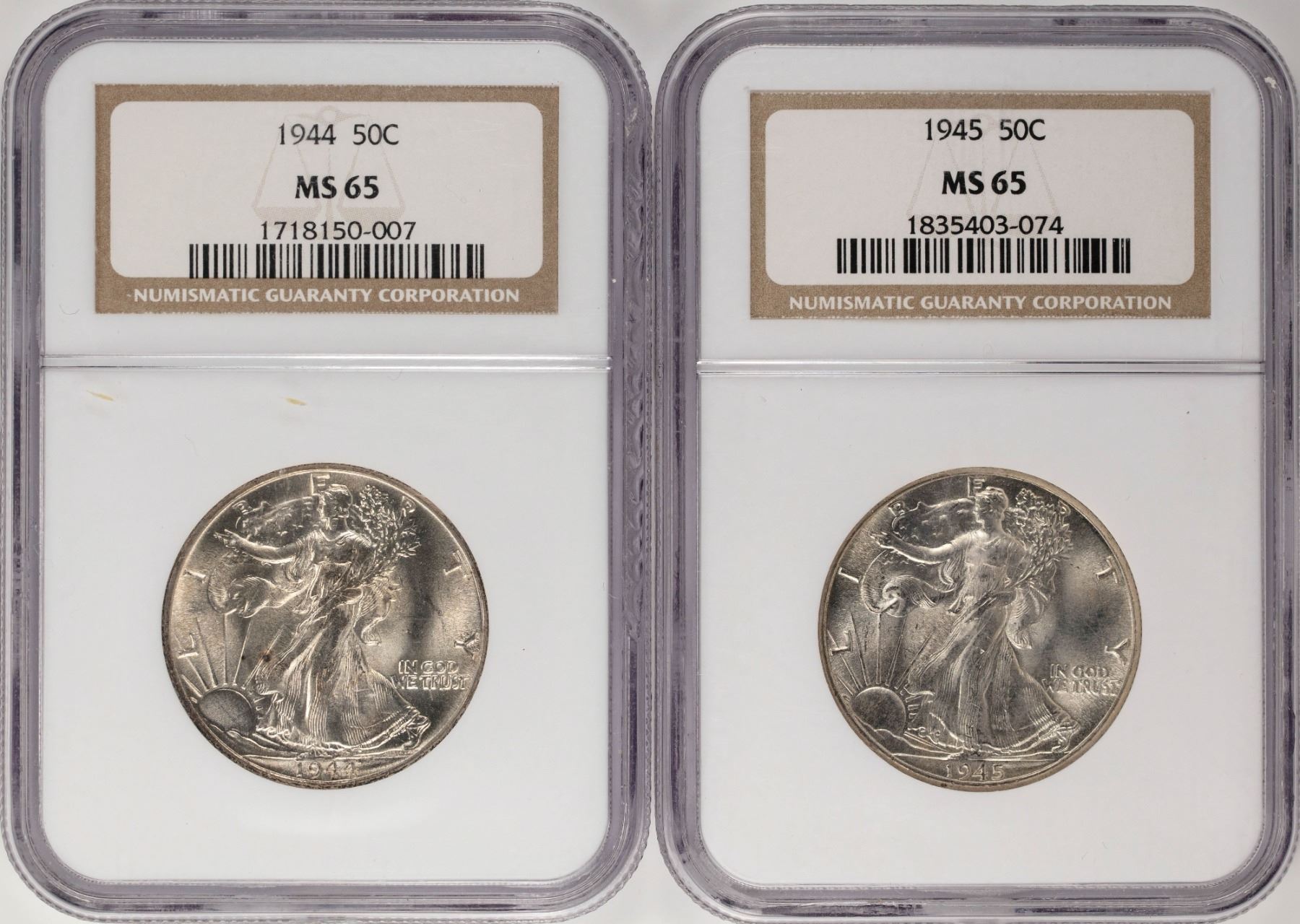 One Lot of 1944-1945 Walking Liberty Half Dollar Coins NGC MS65.