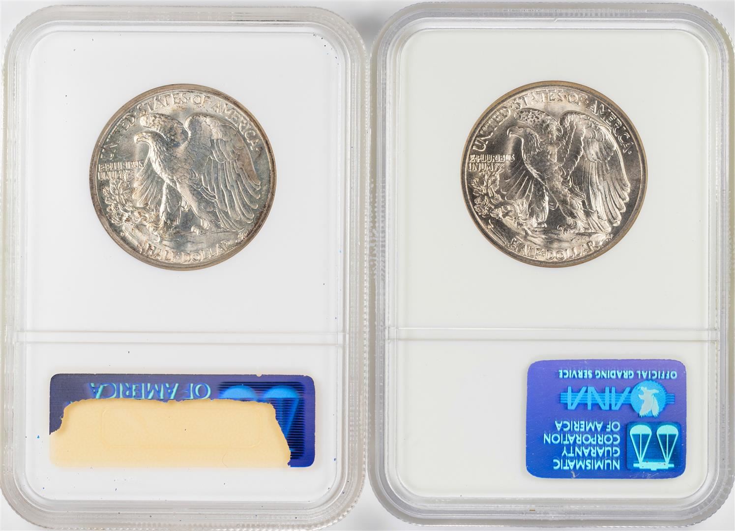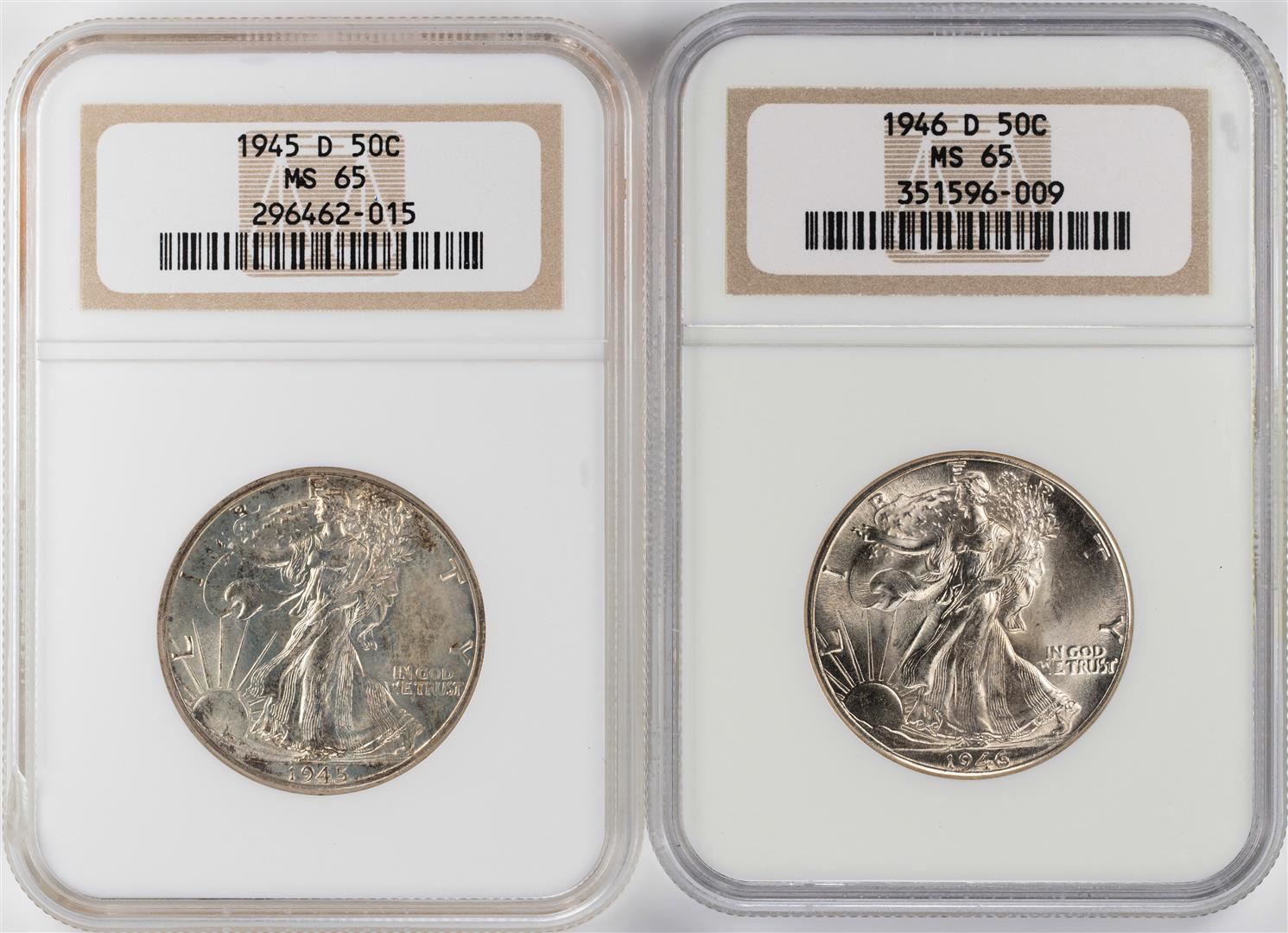 One Lot of 1945-D to 1946-D Walking Liberty Half Dollar Coins NGC MS65. NGC Certified.