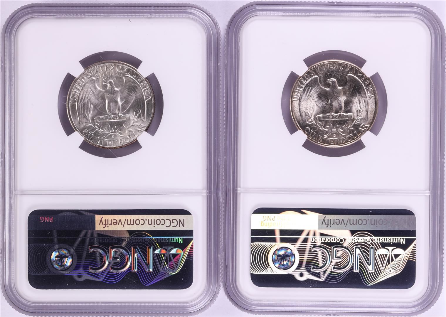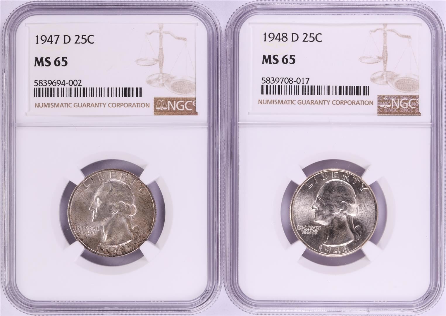 One Lot of 1947-D & 1948-D Washington Quarter Coins NGC MS65. NGC Certified.