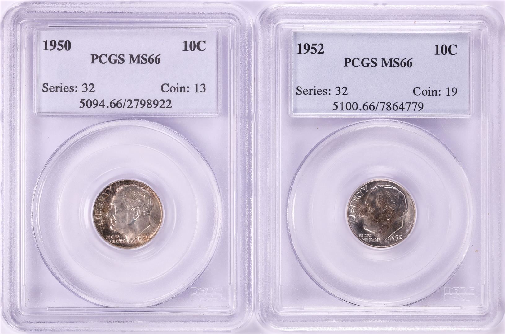 One Lot of 1950 & 1952 Roosevelt Dime Coins PCGS MS66. PCGS Graded.