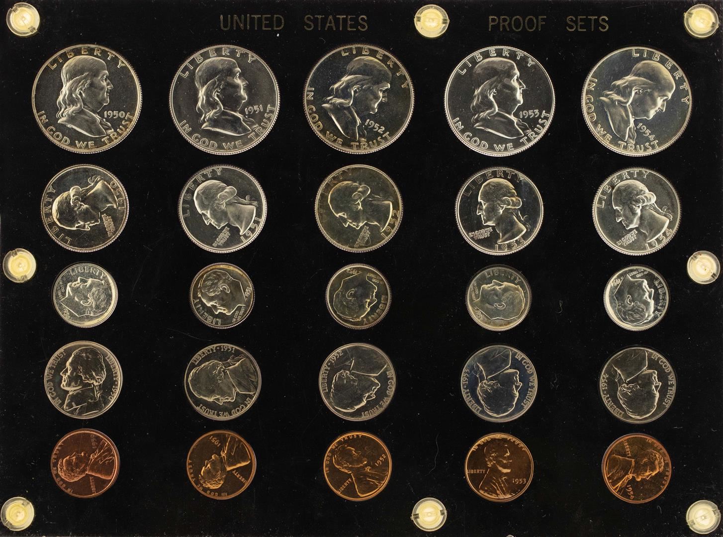 One Lot of 1950-1954 (5) Coin Proof Sets.