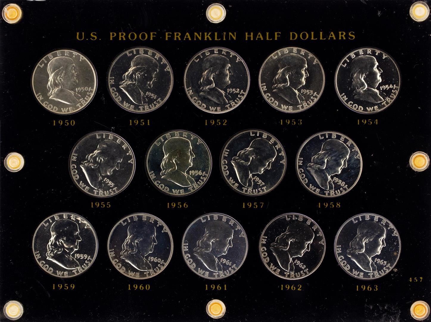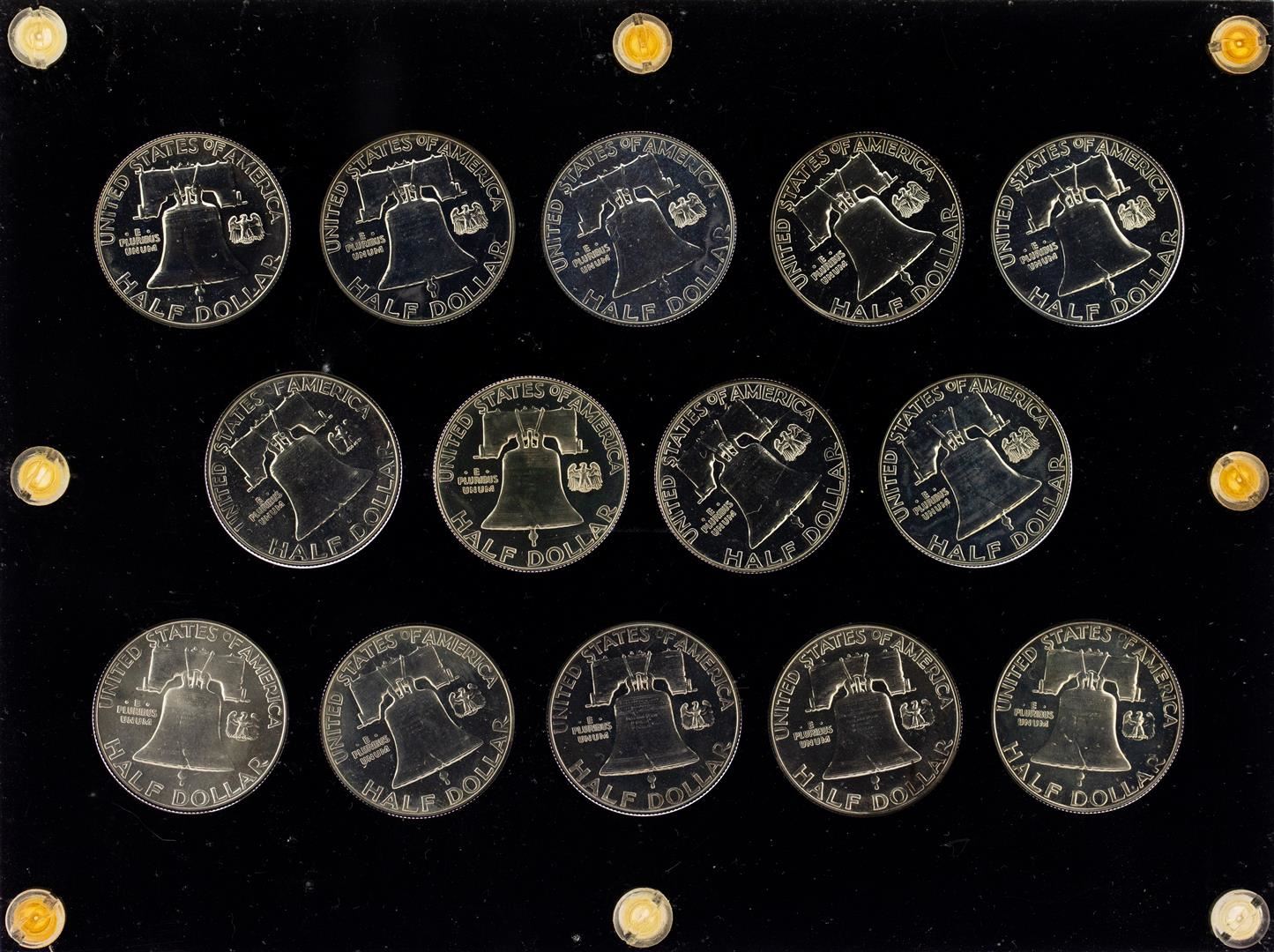 One Lot of 1950-1963 Proof Franklin Half Dollar Coins.