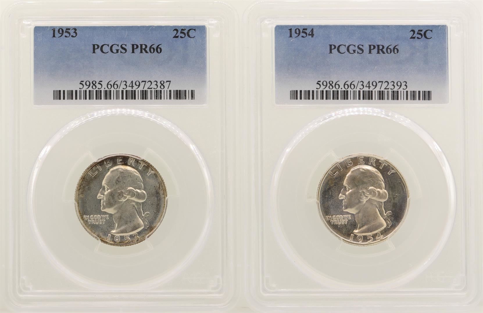 One Lot of 1953-1954 Proof Washington Quarter Coins PCGS PR66. PCGS Graded.