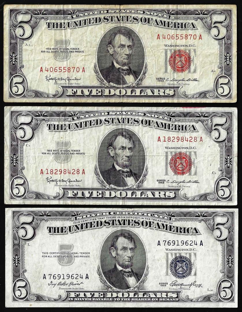 Lot of 1953 $5 Silver Certificate & 1963 $5 Legal Tender Notes