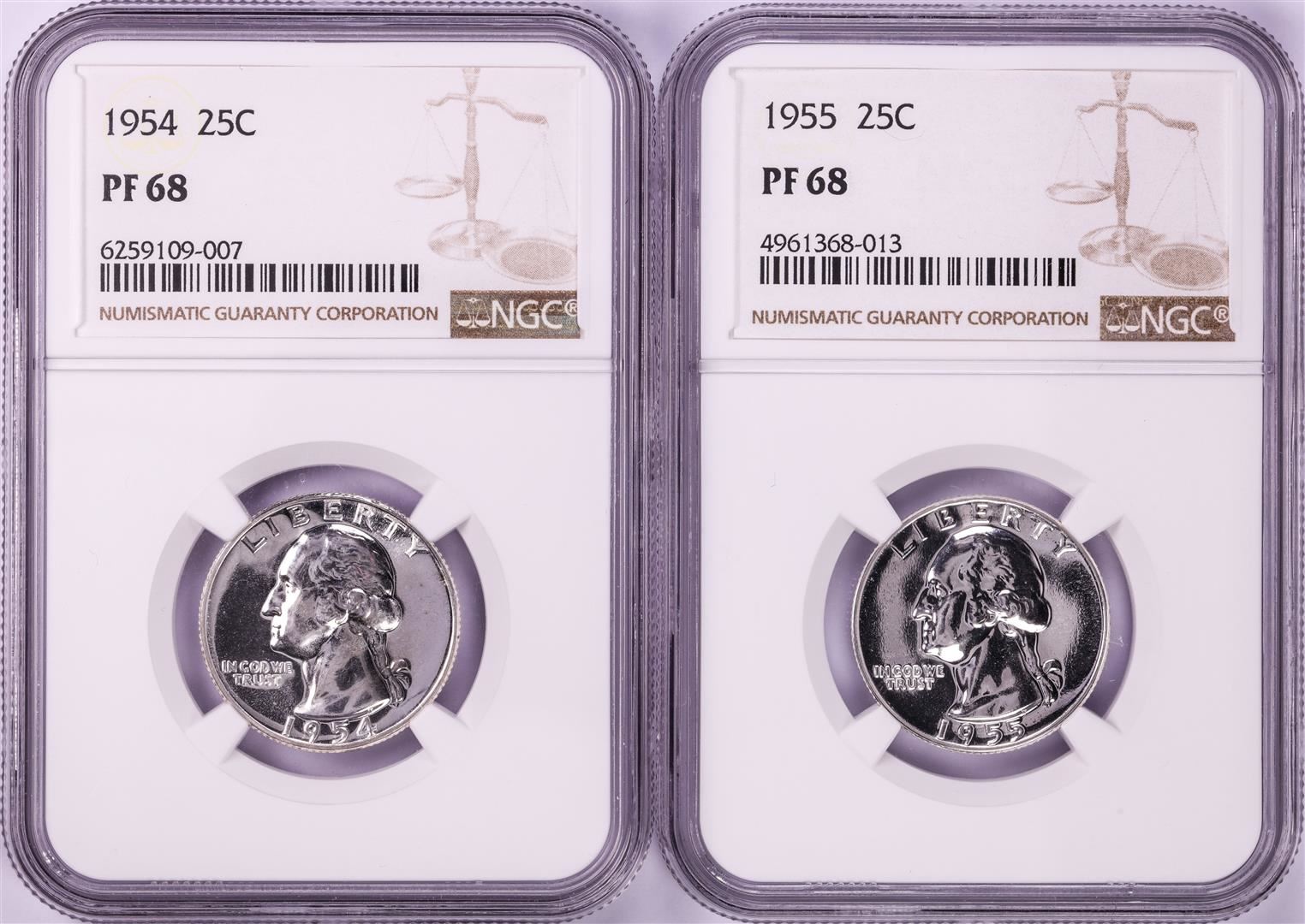 One Lot of 1954-1955 Proof Washington Quarter Coins NGC PF68. NGC Certified.