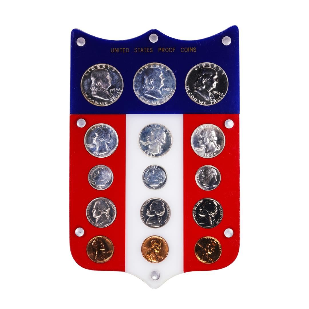 One Lot of 1954-1956 (5) Coin Proof Sets in Shield.
