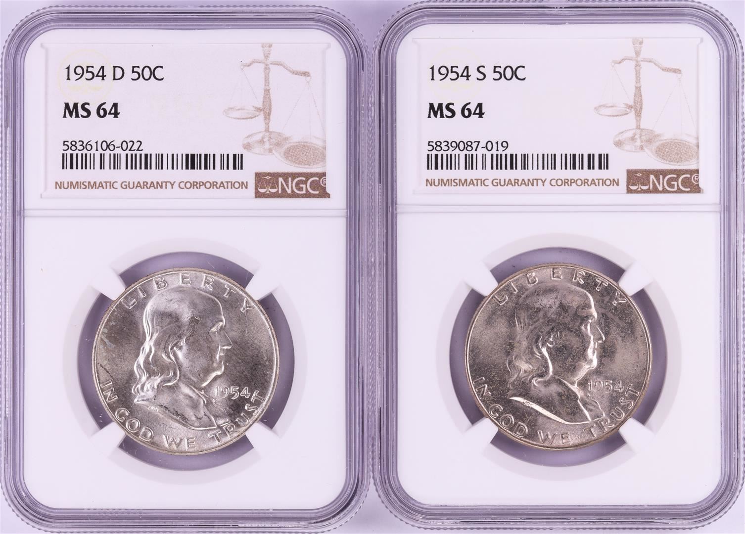 One Lot of 1954-S & 1954-D Franklin Half Dollar Coins NGC MS64. NGC Certified.