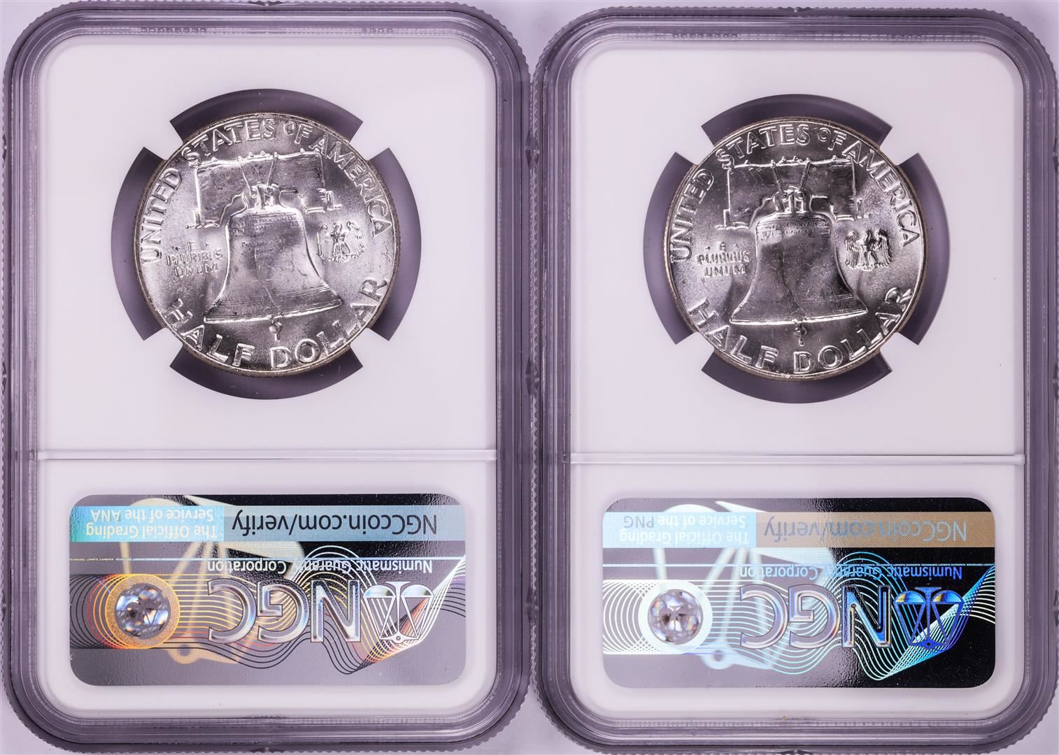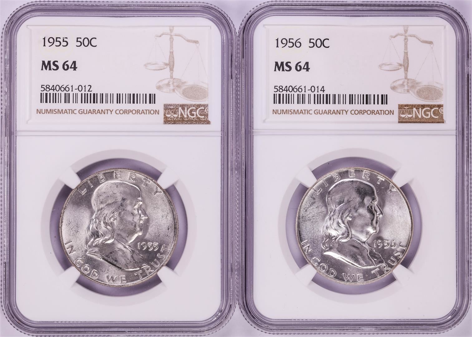 One Lot of 1955-1956 Franklin Half Dollar Coins NGC MS64. NGC Certified.