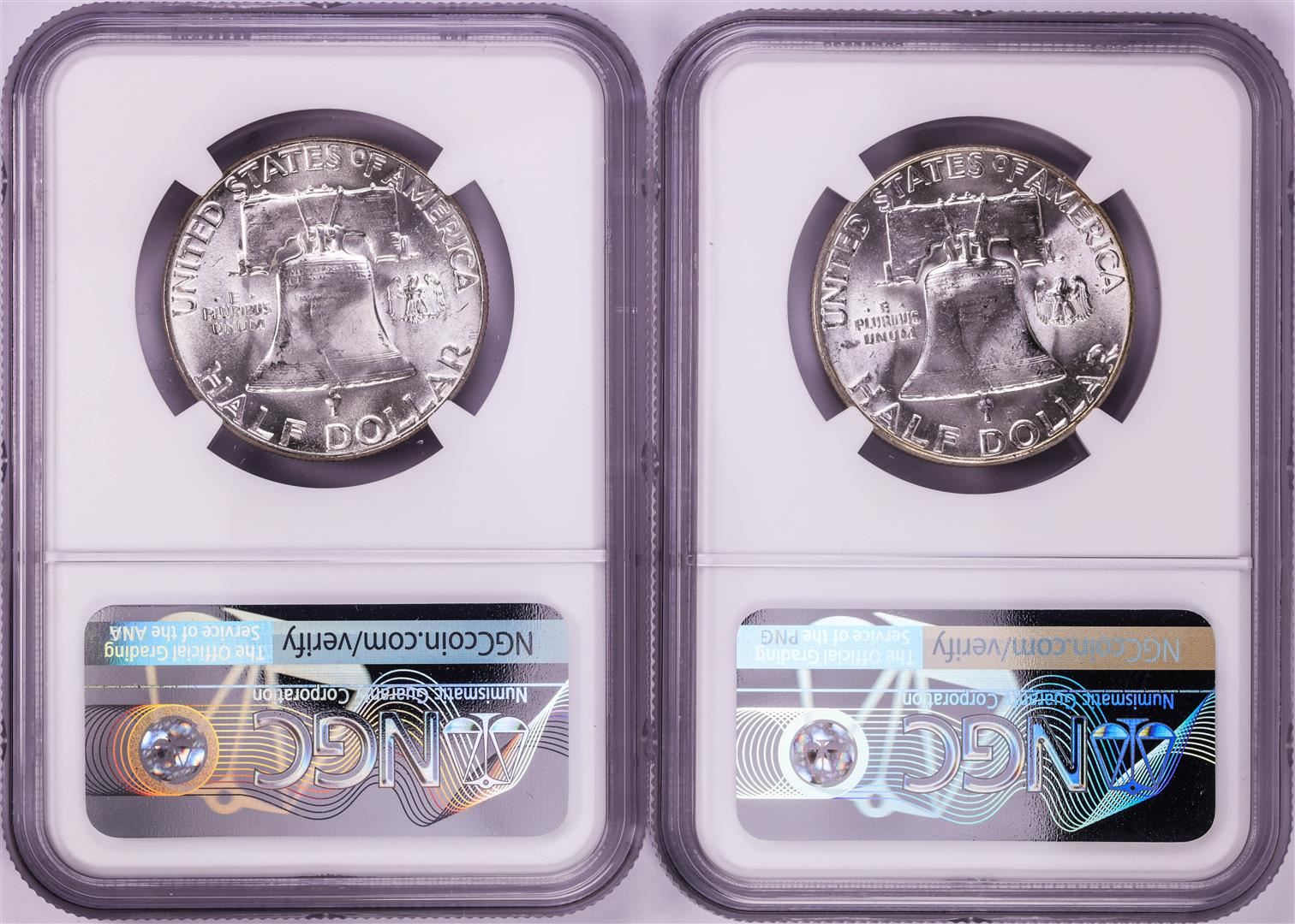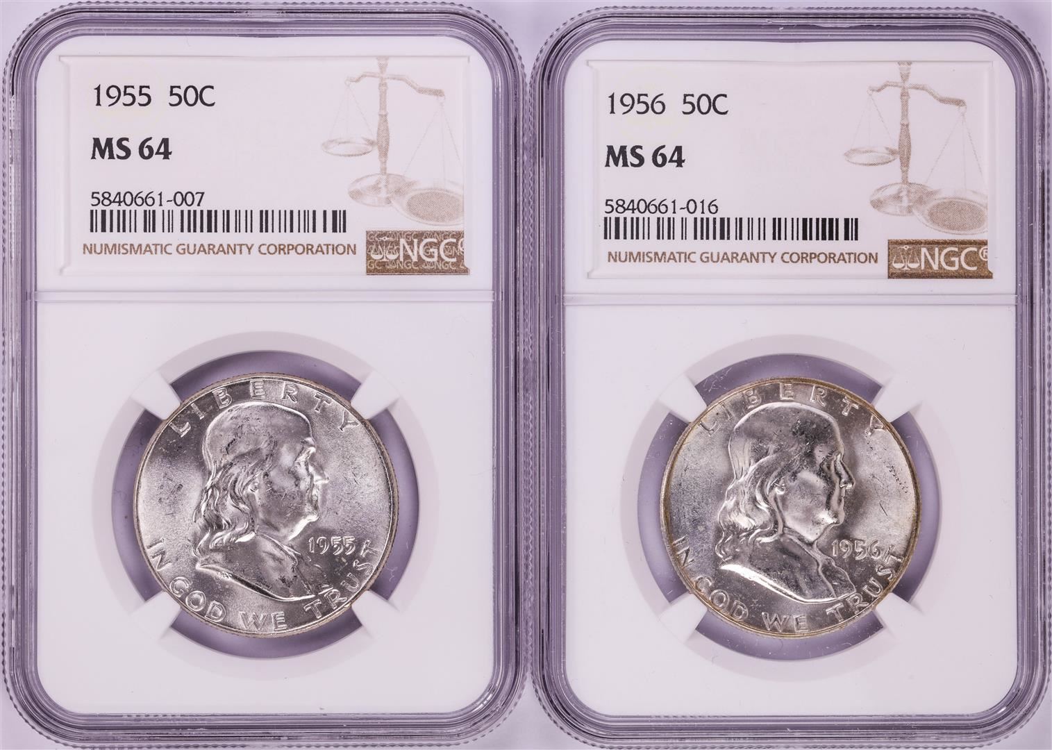 One Lot of 1955-1956 Franklin Half Dollar Coins NGC MS64. NGC Certified.