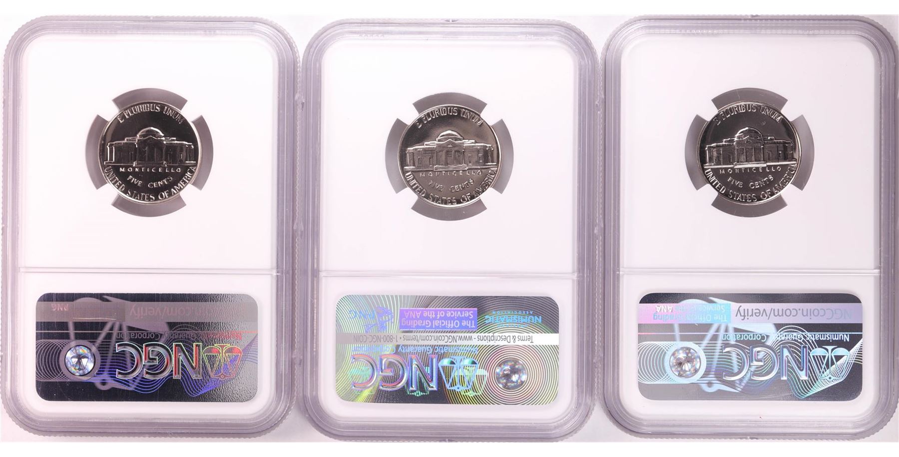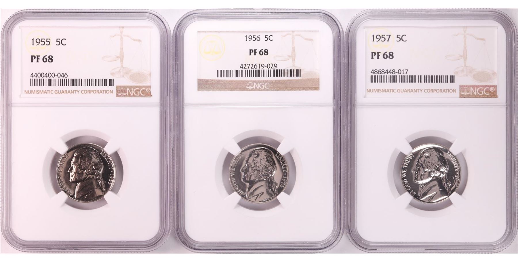 One Lot of 1955-1957 Proof Jefferson Nickel Coins NGC PF68. NGC Certified.