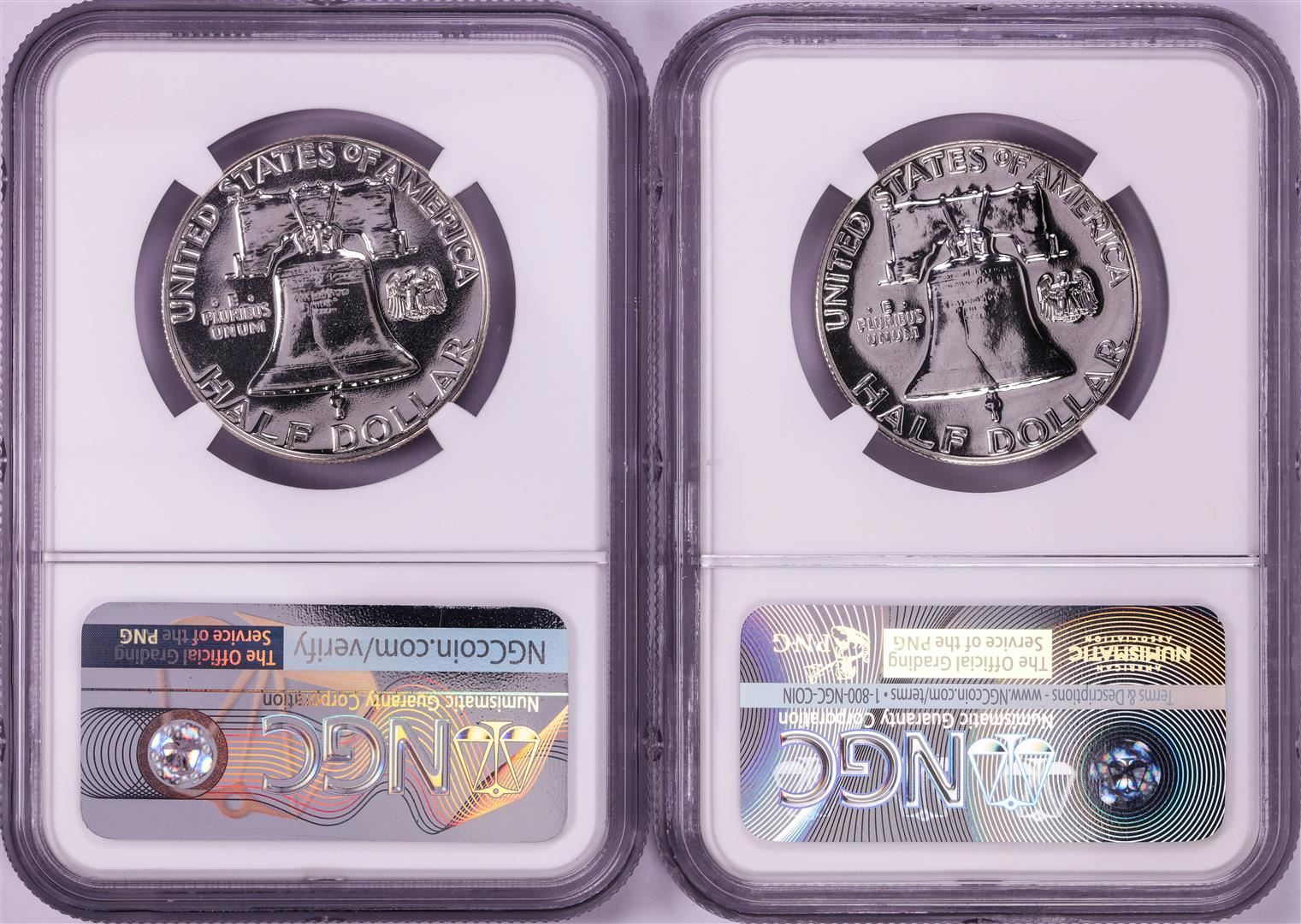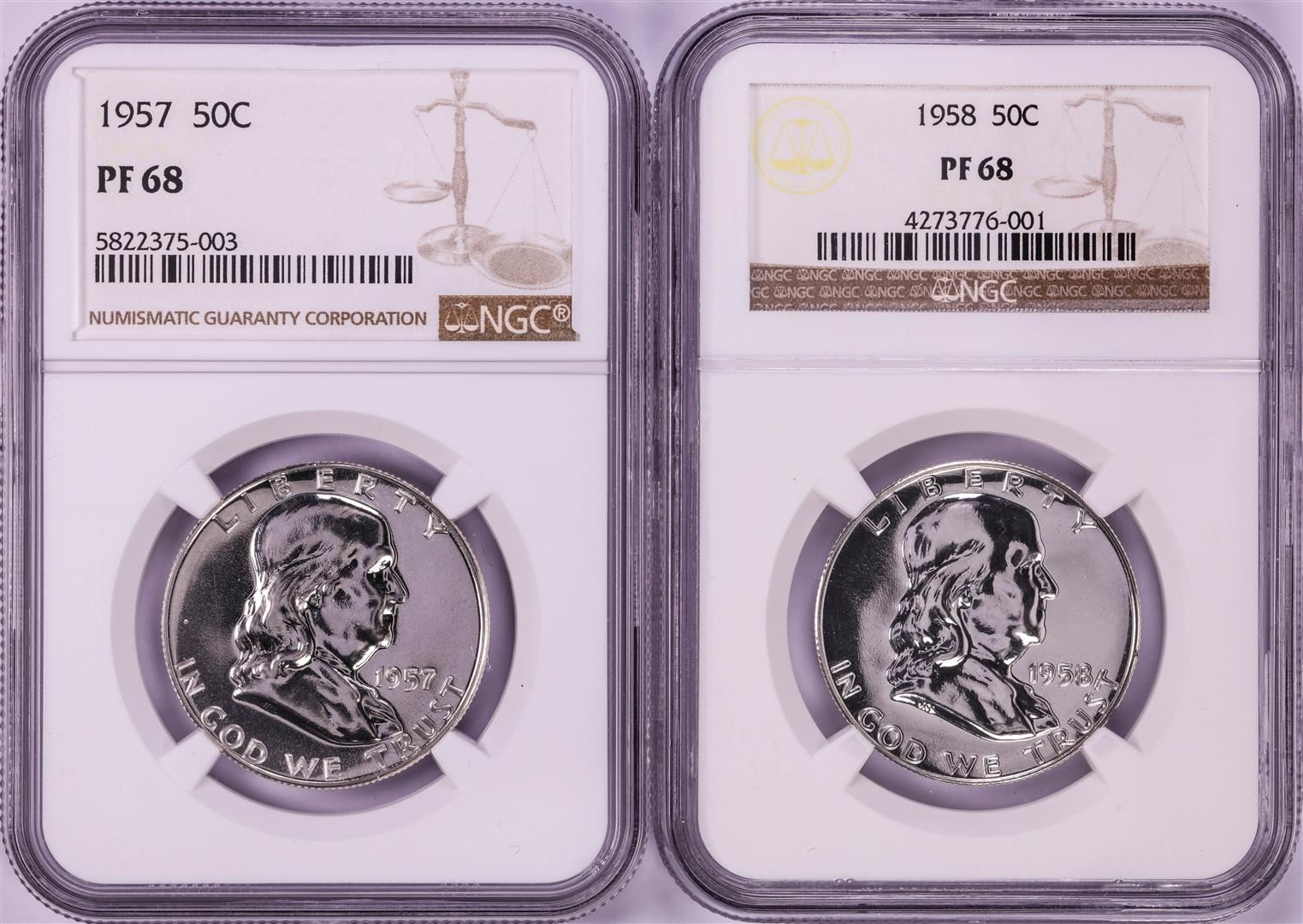 One Lot of 1957-1958 Proof Franklin Half Dollar Coins NGC PF68. NGC Certified.