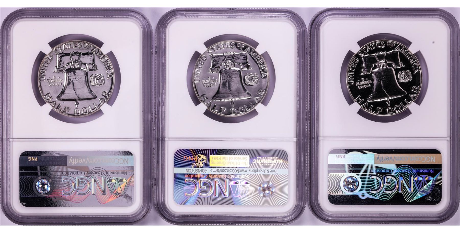 One Lot of 1957-1959 Proof Franklin Half Dollar Coins NGC PF68. NGC Certified.