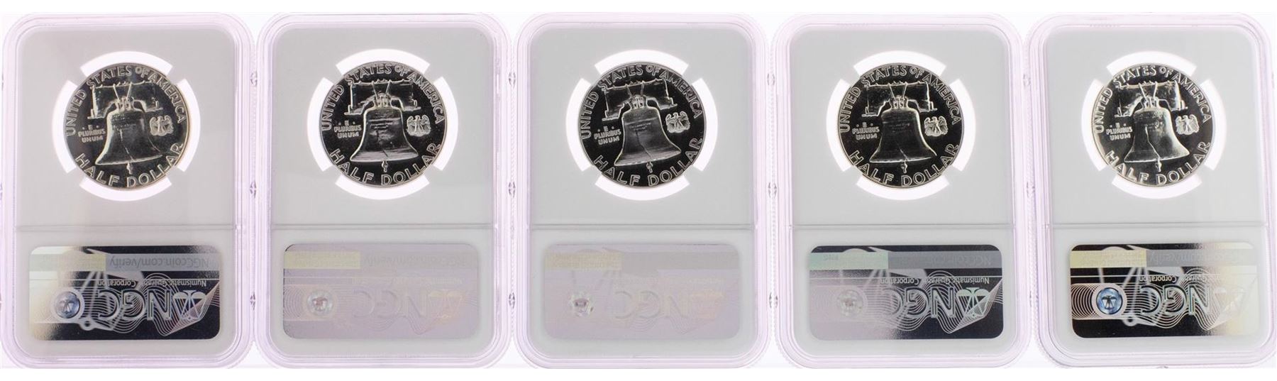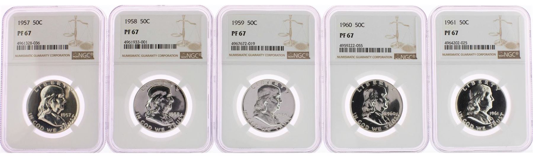 One Lot of 1957-1961 Franklin Half Dollar Coins NGC PF67. NGC Certified.