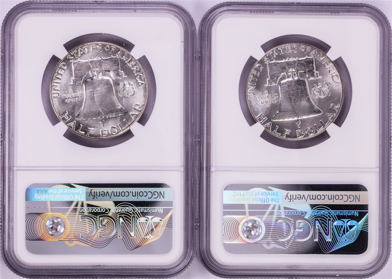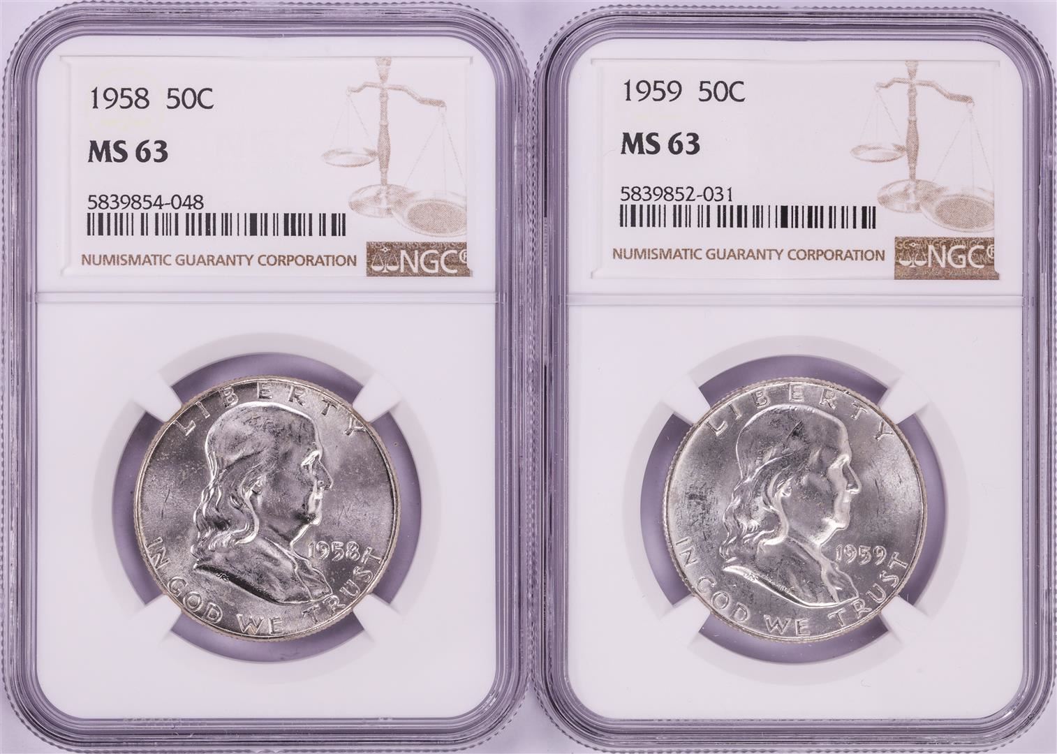 One Lot of 1958-1959 Franklin Half Dollar Coins NGC MS63. NGC Certified.
