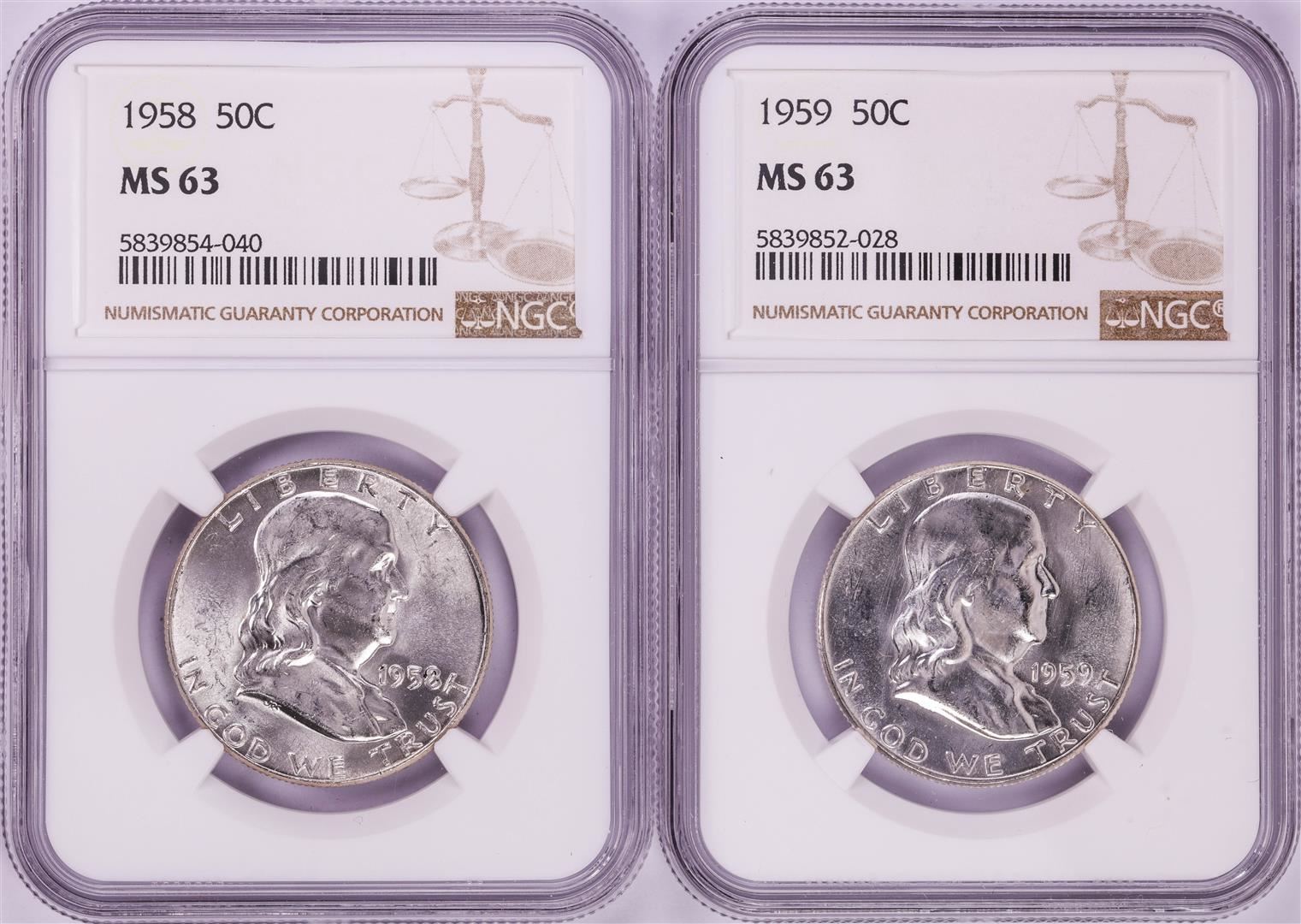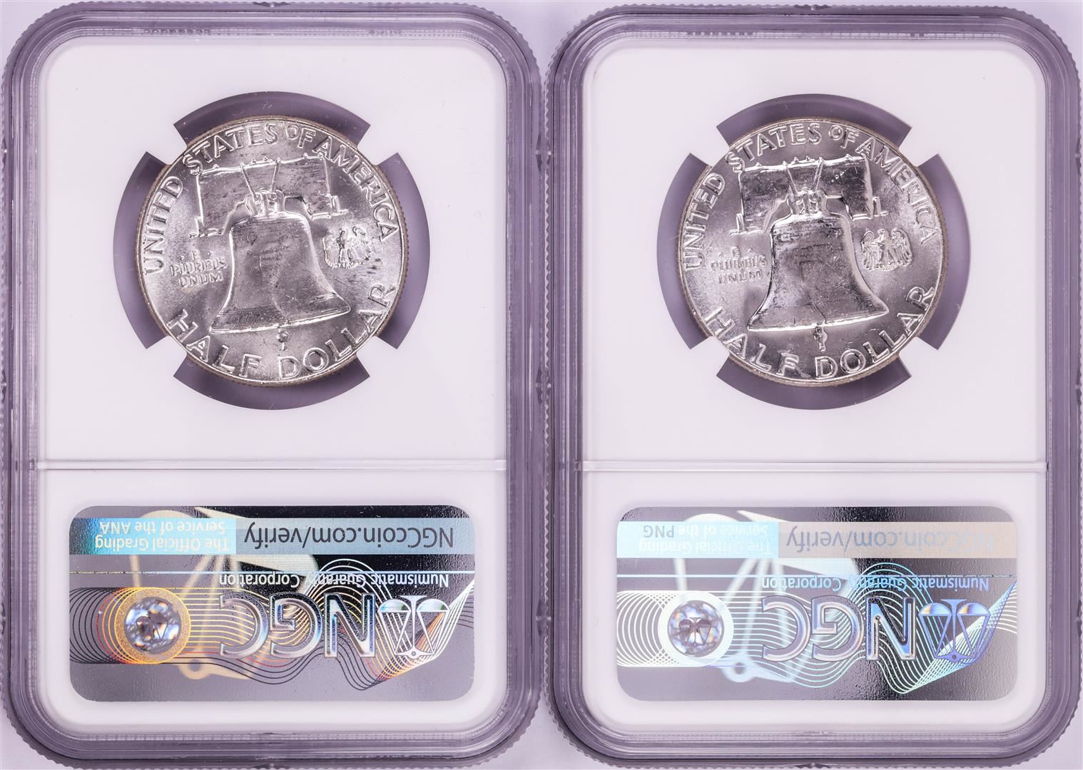 One Lot of 1958-1959 Franklin Half Dollar Coins NGC MS63. NGC Certified.