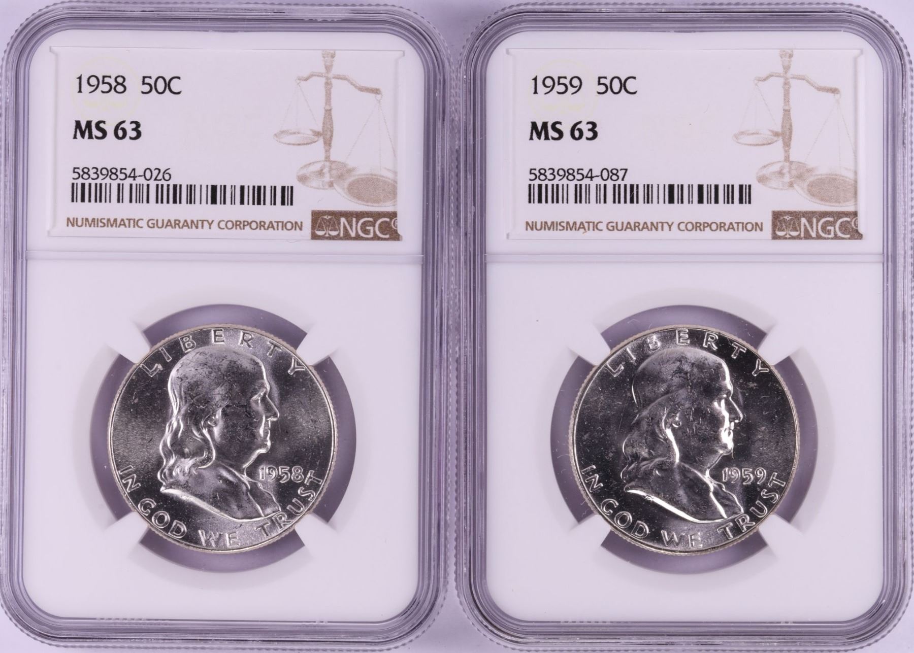 One Lot of 1958-1959 Half Dollar Coins NGC MS63.