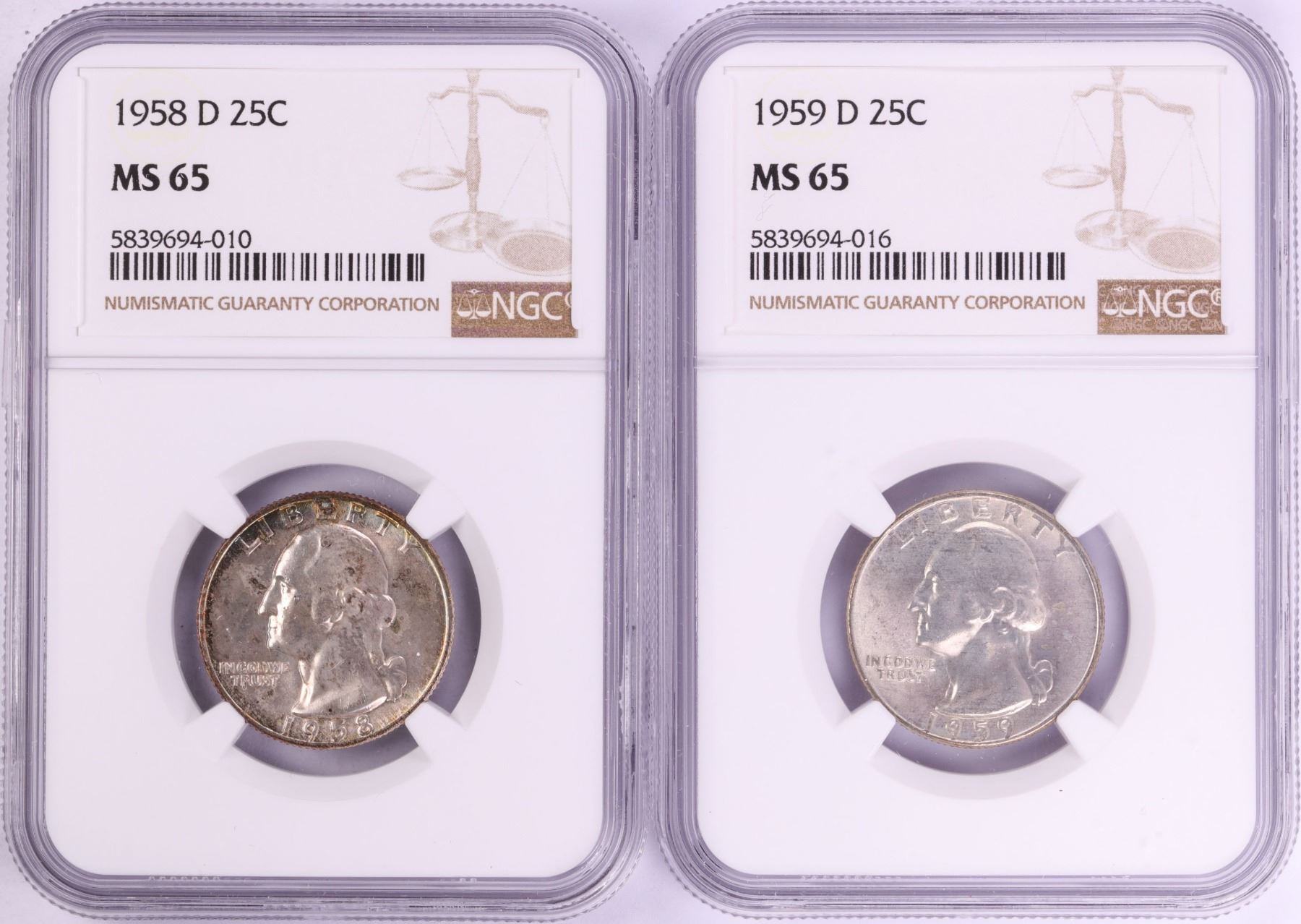 One Lot of 1958-D & 1959-D Washington Quarter Coins NGC MS65.